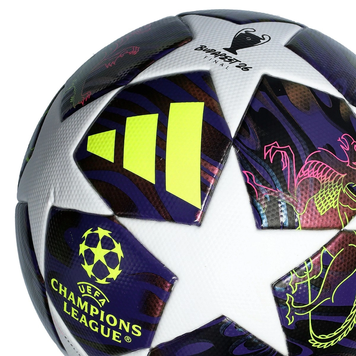 Adidas presenteert de ballen voor de finale van de UEFA Champions League 2025-2026. Een ontwerp met paarse, gele en witte tinten, een kleurenpalet dat nog nooit eerder is gebruikt in een editie. Geïnspireerd op Boedapest, met grafische afbeeldingen van een leeuw (geïnspireerd op de beroemde Széchenyi Chain-brug) en mythische wezens. Klaar om de finale te beleven die gespeeld wordt in de Puskás Arena?