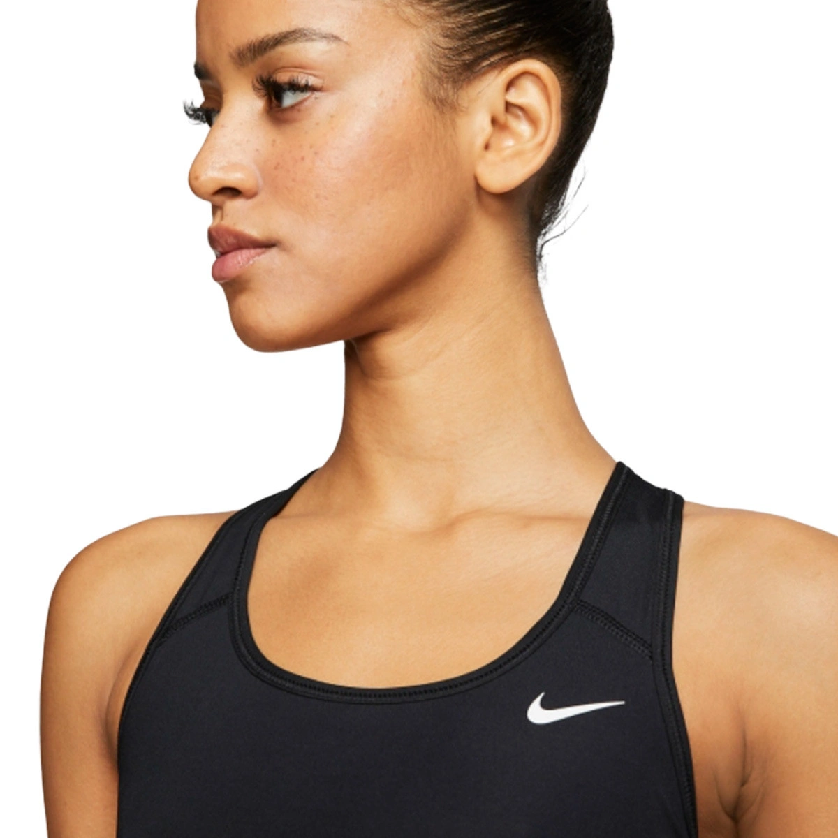 De Nike Swoosh sportbeha zonder vulling combineert een compressieve stof met zweetabsorberende technologie om je droog te houden en de maximale bevestiging te bieden voor mid-impact activiteiten.