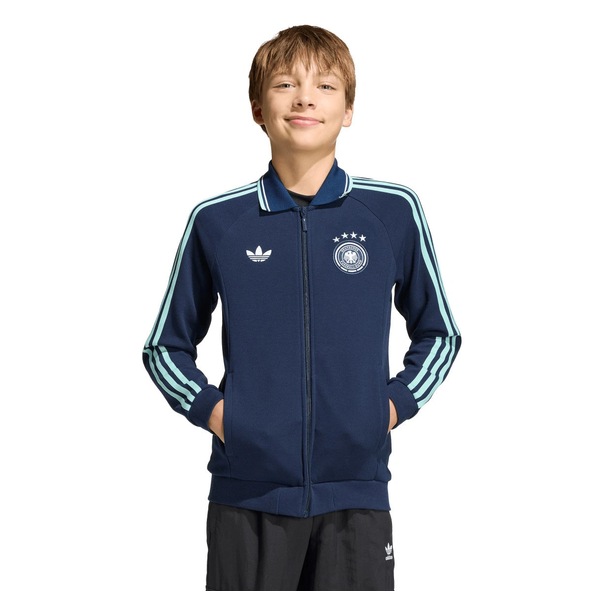 Laat ze de spanning van het voetbal vieren met het presentatiejack van het uittenue van Duitsland. Ontworpen voor jonge fans, brengt dit jack de energie van de Wereldbeker 2026 tot leven. Of het nu is om te spelen, naar school te gaan of het team aan te moedigen op wedstrijddagen, dit kledingstuk is gemaakt om een retro-geïnspireerde voetbalstijl met een eigentijdse twist toe te voegen aan hun dagelijkse avonturen.