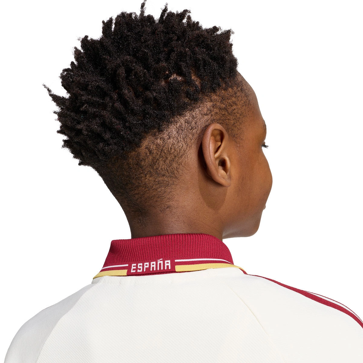 Maak je klaar om je onderdeel van het team te voelen met het adidas Spanje Pre-Match jack, geïnspireerd op het uittenue van de Wereldbeker 2026 voor kinderen.