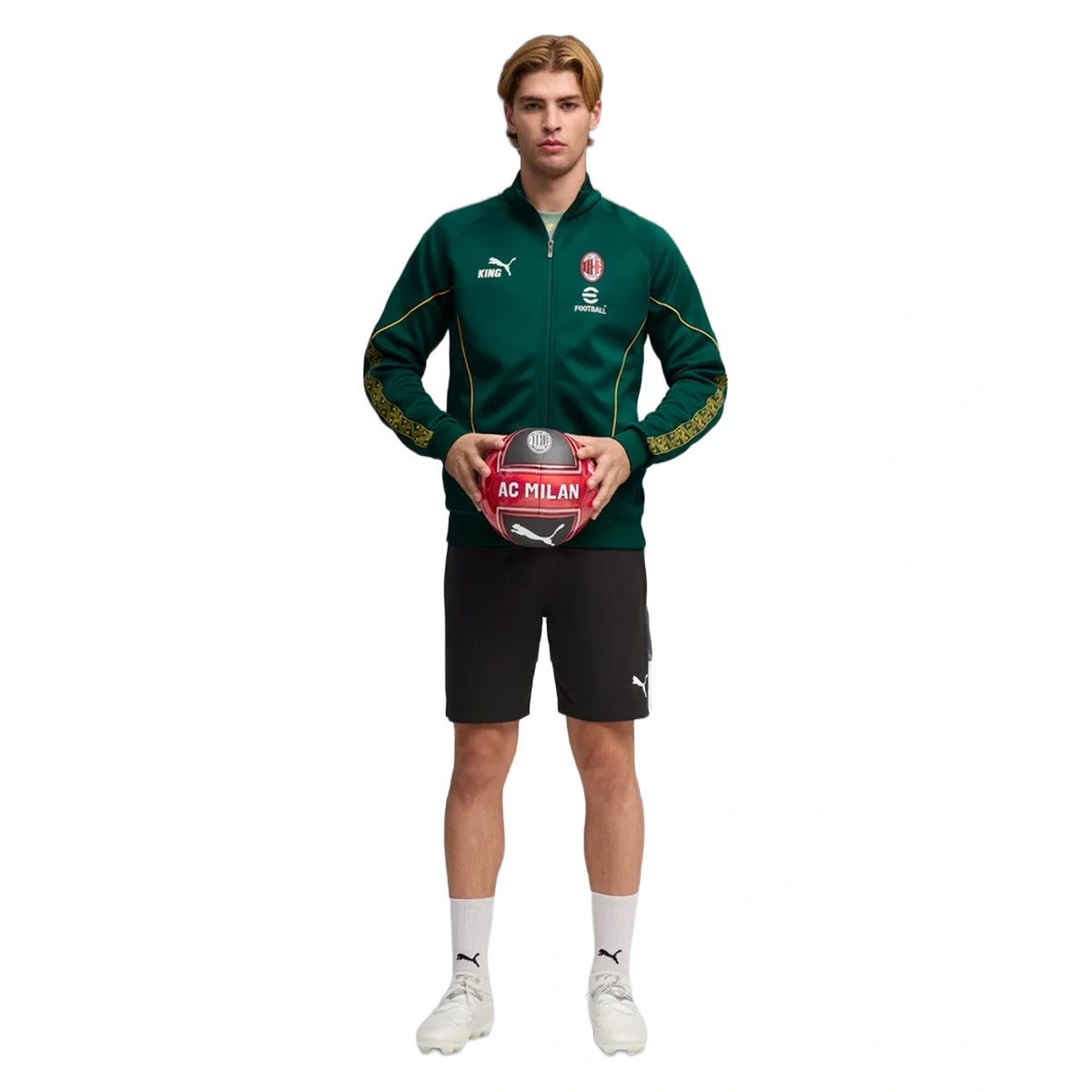 De PUMA King Anthem-collectie combineert retro en modern en wordt gedragen door de spelers vóór de wedstrijden. Met gedurfde vintage-geïnspireerde ontwerpen eert dit jack de erfenis van AC Milan en laat het tegelijkertijd jouw trots op het team zien, waardoor het een echt symbool van loyaliteit en traditie wordt.