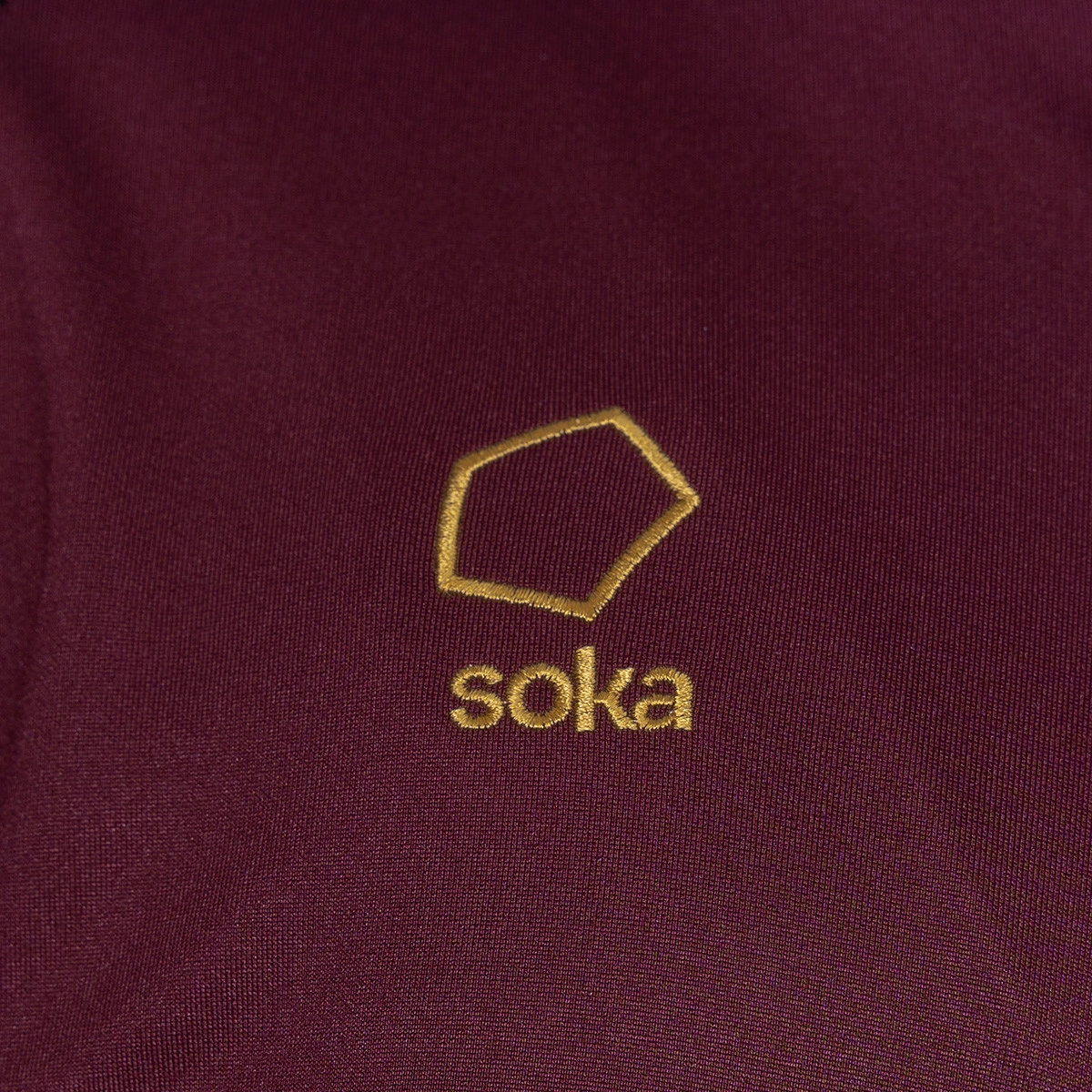 Sociedad Deportiva Huesca Anthem 2025-2026 jack voor kinderen in een elegante bordeauxrode kleur, perfect voor voetballiefhebbers en stijlbewuste mensen. Gemaakt door het merk Soka, vertegenwoordigt dit kledingstuk de essentie van de club.