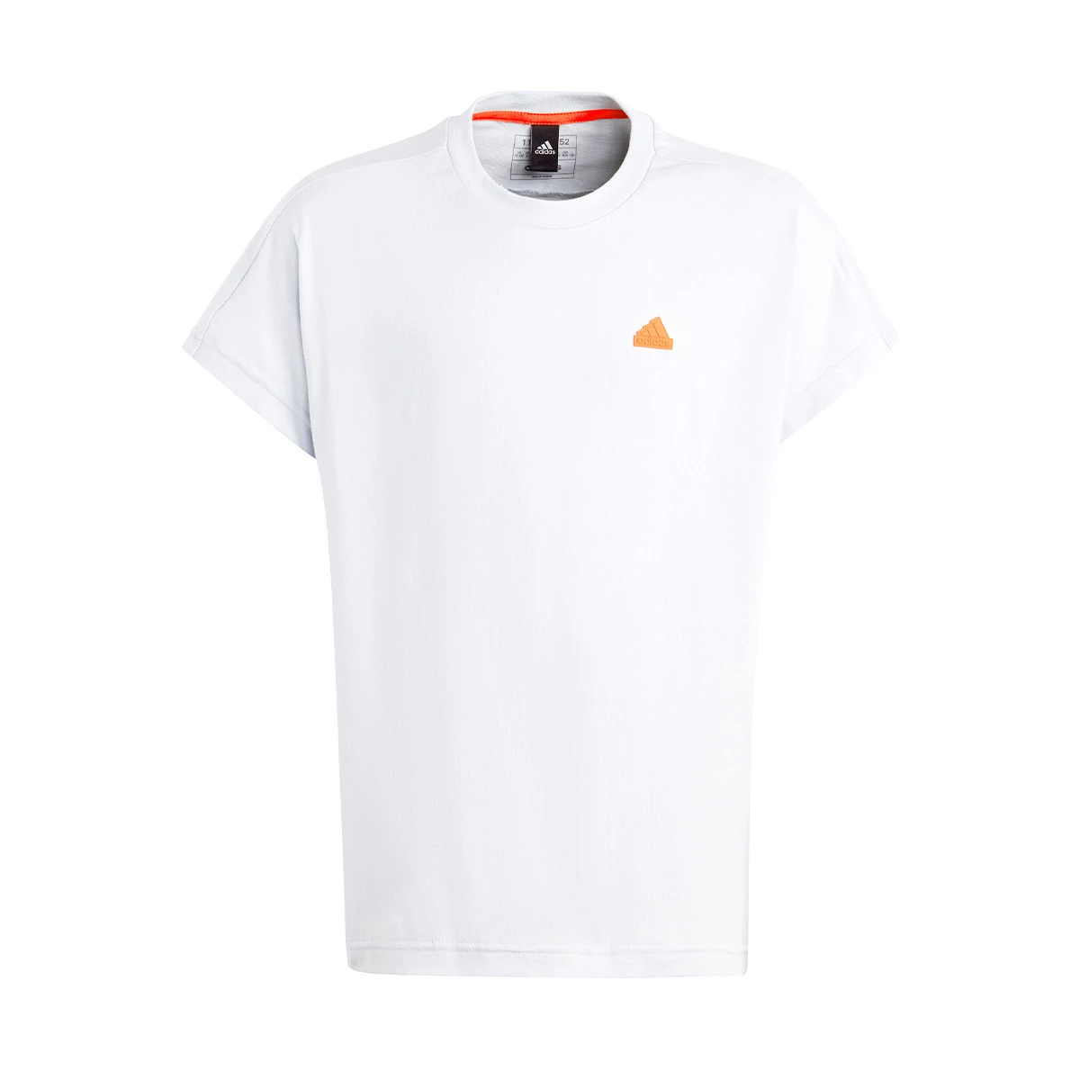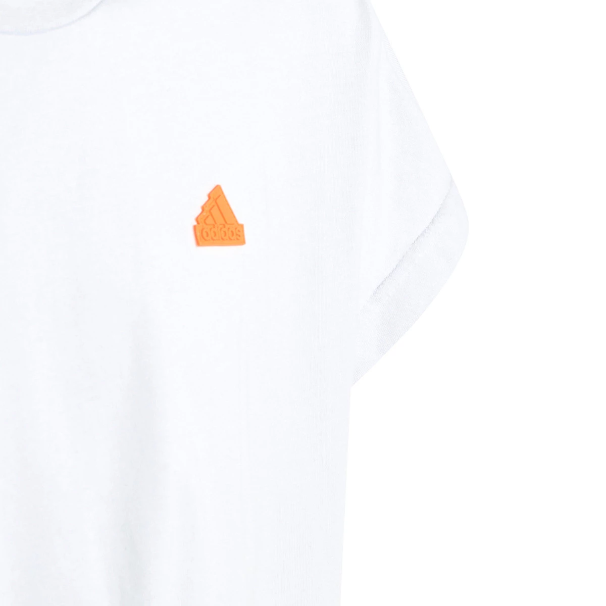 Dit T-shirt voor actieve jeugd biedt je een minimalistische stijl en totaal comfort. Verlaagde schoudernaden laten je los tijdens zomerse weekenden. Een adidas logo op de achterkant maakt de look discreet af.