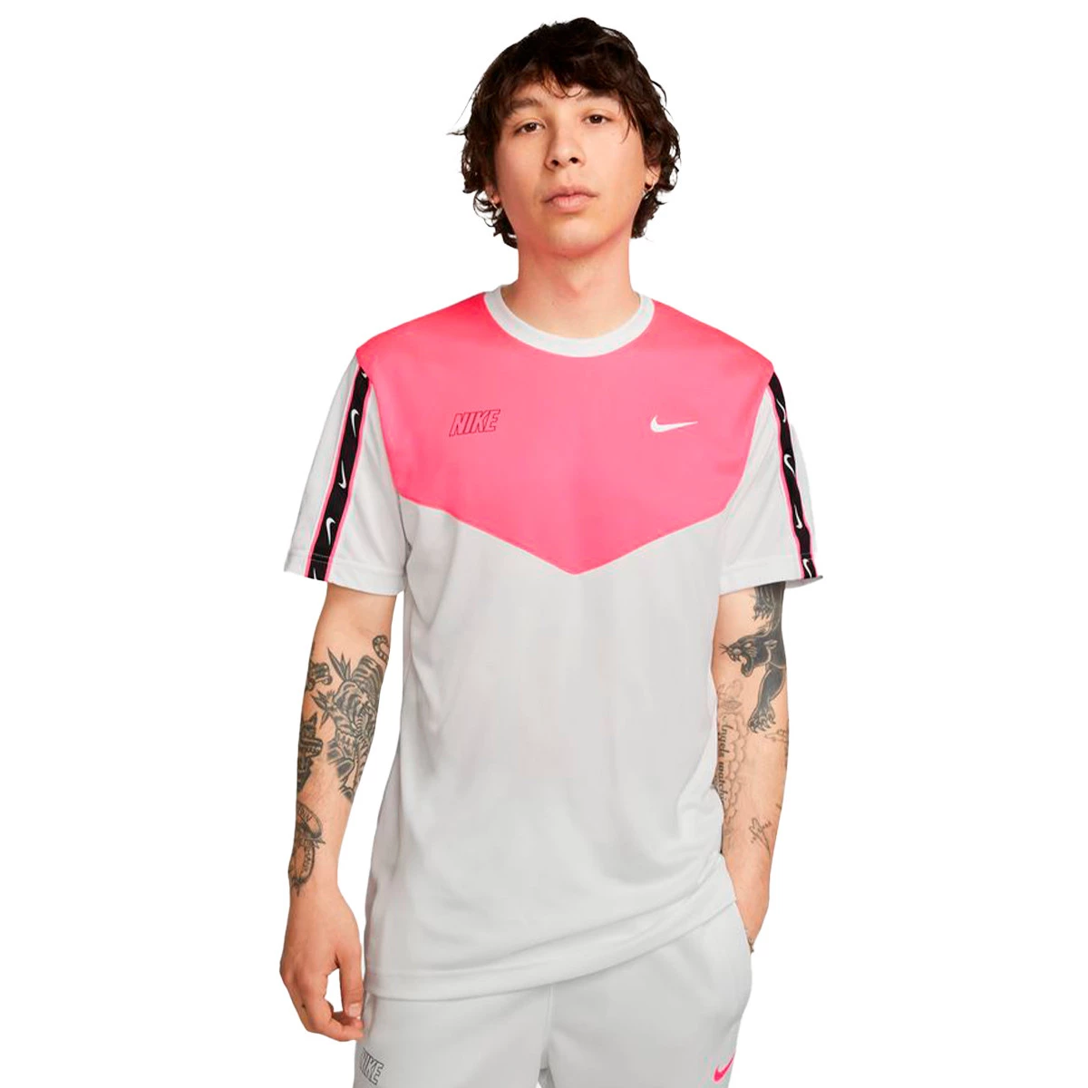 Ga voor een klassieke look met het Swoosh-logo. Chevron-designlijnen en herhalende Swoosh-logobanden voegen een gedurfde klassieke stijl toe aan dit easy-fit T-shirt. Bovendien bevat de stof een technologie die zweet afvoert om je de hele dag koel en ademend te houden.