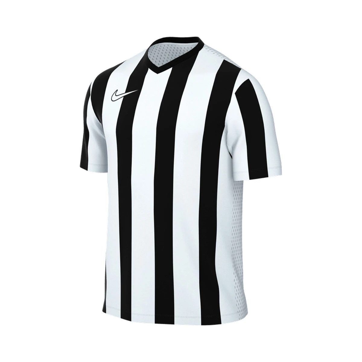 Dit Nike Striped V shirt heeft een lichtgewicht en ademende stof die zorgt voor ventilatie. Het heeft een gestreept ontwerp met een V-hals voor een sportieve en comfortabele stijl. Ideaal voor Training en gebruik tijdens wedstrijden.