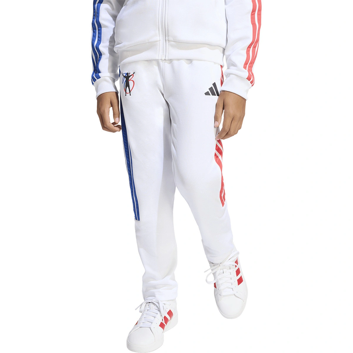 De Jude Bellingham trainingsbroek voor kinderen is ontworpen voor jonge voetballiefhebbers die graag spelen en hun favoriete speler willen steunen. Gemaakt met een klassiek model en een volledig elastische tailleband met interne trekkoorden, biedt deze broek een veilige en aanpasbare pasvorm, waardoor bewegingsvrijheid binnen en buiten het veld mogelijk is. De opvallende 3 strepen en het 3-bar logo op het linkerbeen, samen met het JB-logo op het rechterbeen, geven een sportieve adidas-stijl. Gemaakt van een mix van zachte materialen, zijn deze comfortabele en duurzame broeken een veelzijdige aanvulling op de garderobe van je kind.