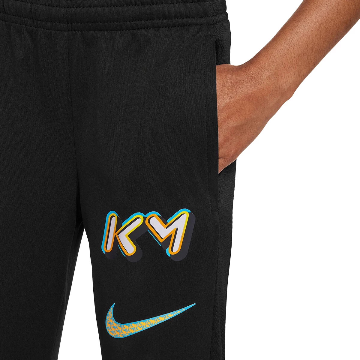 Toon je steun aan je idool met deze Kylian Mbappé lange kinderbroek in zwart en afbeeldingen op het rechterbeen.