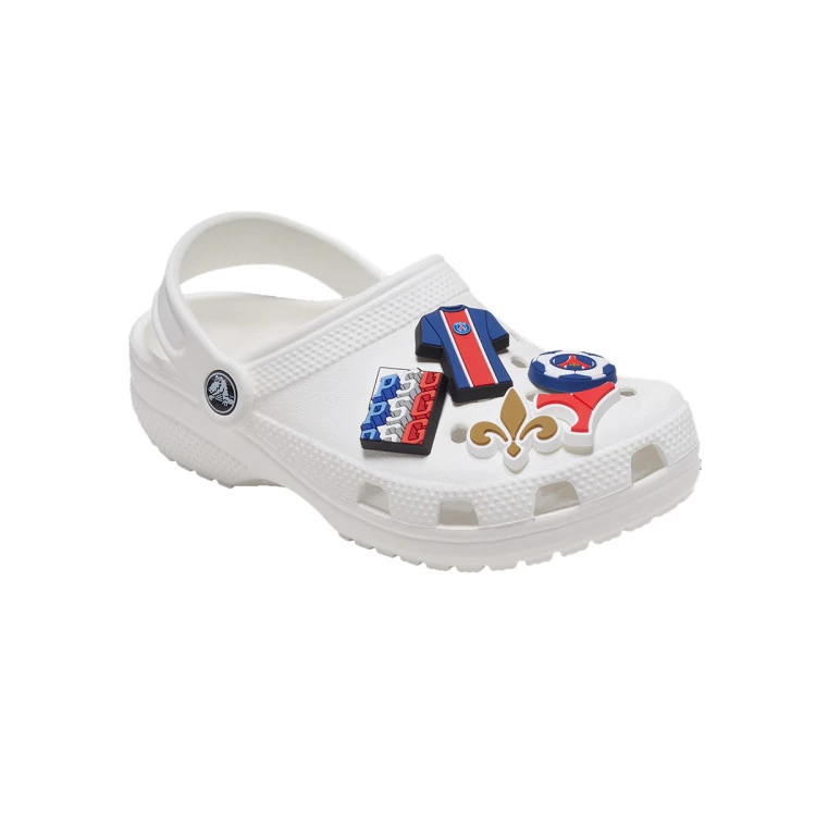 Personaliseer je schoenen met de French team pins. De perfecte aanvulling op je favoriete Crocs-klompen, teenslippers en meer. 5 pinnen geïnspireerd op Paris Saint-Germain en hun kleuren.