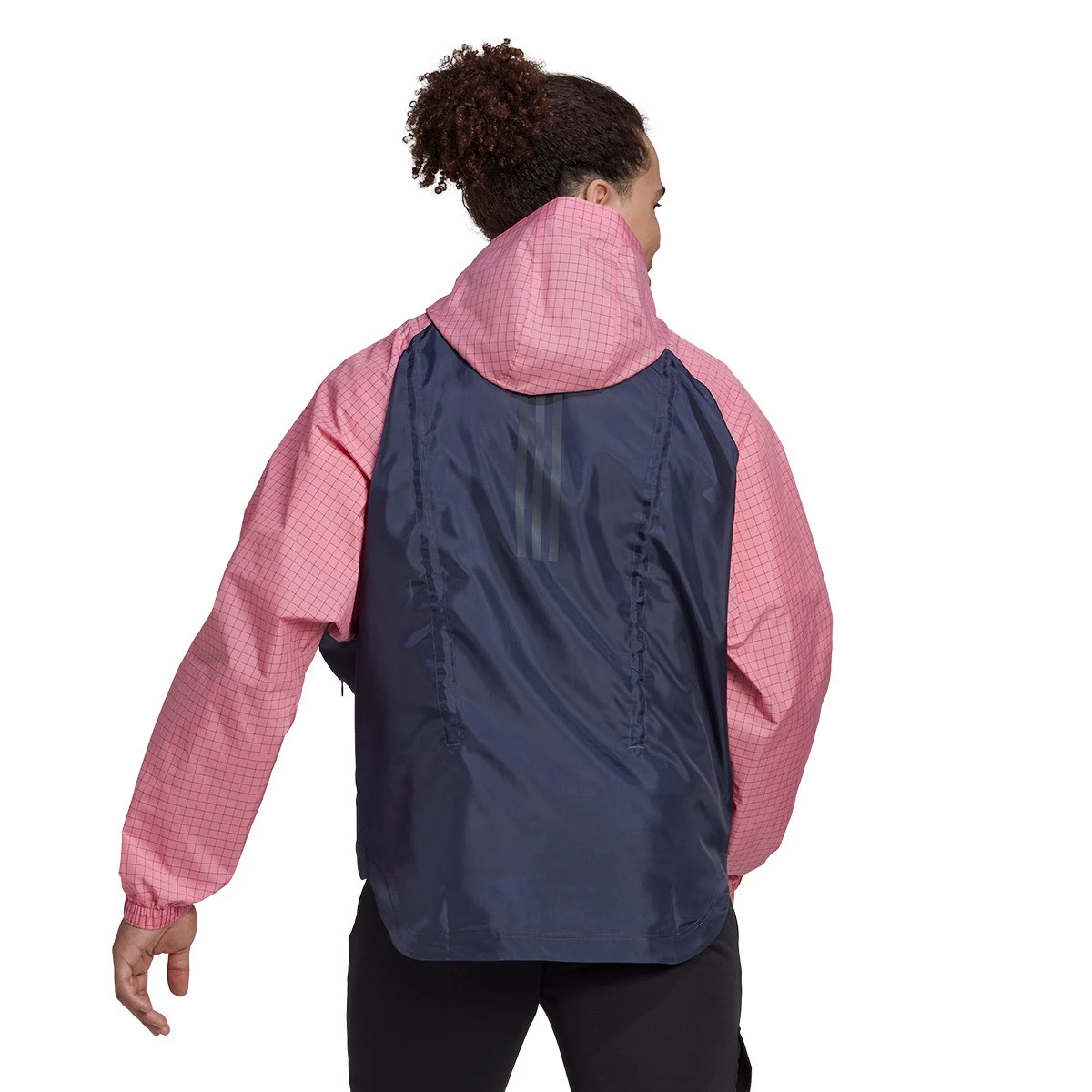 Dit adidas windjack helpt je op jouw manier te schitteren, of het nu regent of niet. Het bevat veel praktische details, zoals de langer dan gebruikelijke gebogen zoom die je beschermt tegen opspattend water tijdens je dagelijkse verplaatsingen. De zijzakken en de verborgen zak aan de voorkant bieden ruimte voor je sleutels en je mobiel. Reflecterende details zorgen ervoor dat je beter zichtbaar bent bij weinig licht.