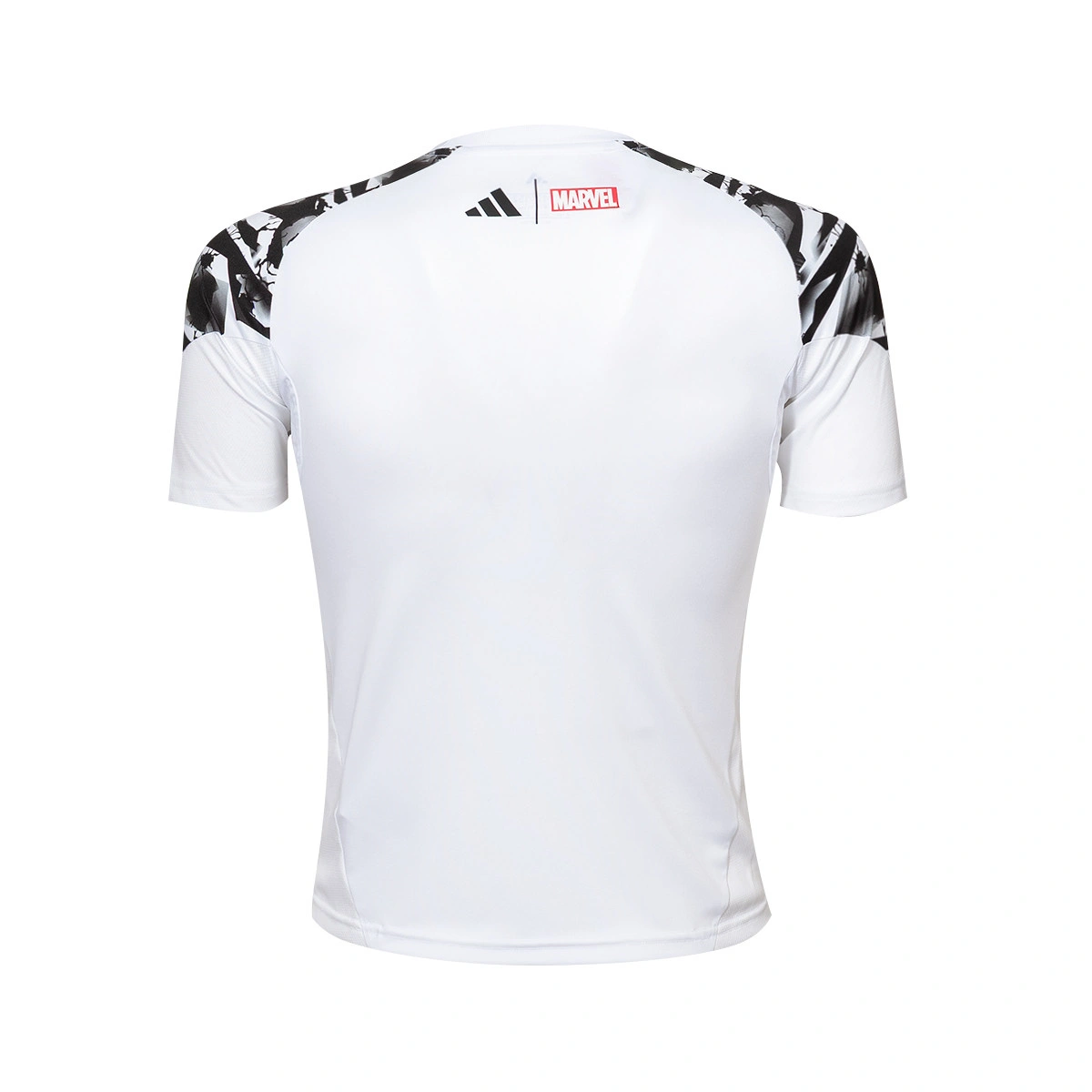 Verbeter je voetbaltechnieken met het adidas Real Madrid x Avengers 2025-2026 trainingsshirt.