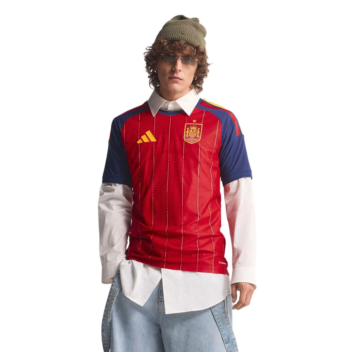 Het shirt van het eerste tenue van het Spaanse nationale team in de authentic versie voor het WK 2026 is een eerbetoon aan de elegantie en passie van het Spaanse voetbal. Geïnspireerd op de levendige kleuren van de Spaanse vlag is dit shirt ontworpen om indruk te maken, zowel op als buiten het veld.