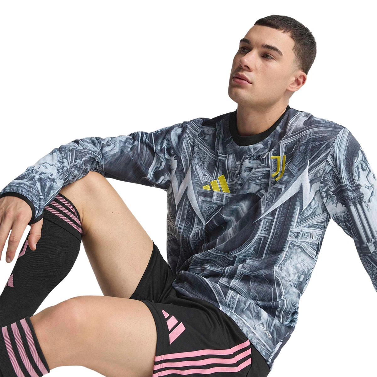 Bereid je voor om te schitteren bij elke wedstrijd met het Juventus Pre-Match Shirt 2025-2026 van adidas met lange mouwen. Een authentiek eerbetoon aan het ontwerp dat de sterren van het team dragen voordat ze het veld betreden. Dit shirt, behorend tot de officiële collectie van het seizoen 2025-2026, draagt het onmiskenbare Juventus-stempel en combineert traditie en moderniteit met een vooruitstrevend tintje.