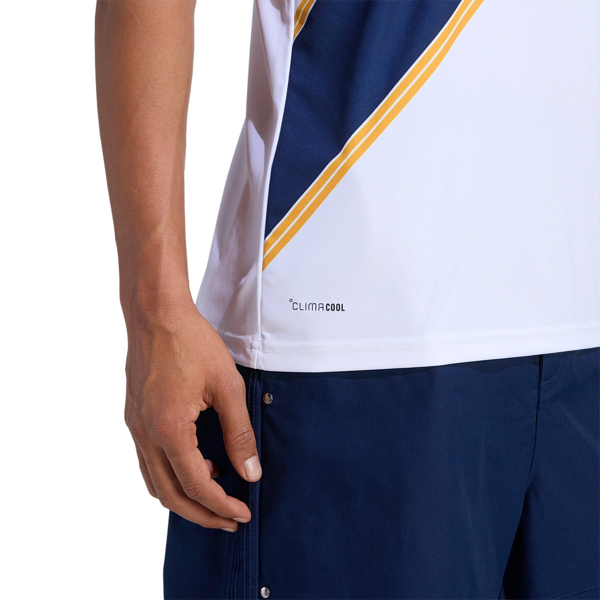 Draag het shirt van het eerste tenue van LA Galaxy 2026-2027 met trots op het veld. Dit shirt eert de illustere geschiedenis van de club en bevat een vooruitstrevend design. De iconische band, symbool van voortdurende beweging, vertegenwoordigt de niet-aflatende zoektocht van de club naar groei en succes. Reguleert de temperatuur. Voert vocht af. Presteer maximaal. Het shirt is gemaakt met Climacool-technologie. De Climacool-technologie voert zweet af en verspreidt het, zodat je huid koel en droog blijft en niets je afleidt. Het geborduurde adidas-logo en het clubembleem zorgen voor een authentiek tintje, terwijl het 3-strepenlogo de klassieke stijl compleet maakt. Of je nu op de tribune zit of op het veld staat, dit adidas-shirt is jouw toegang tot het LA Galaxy-erfgoed.
