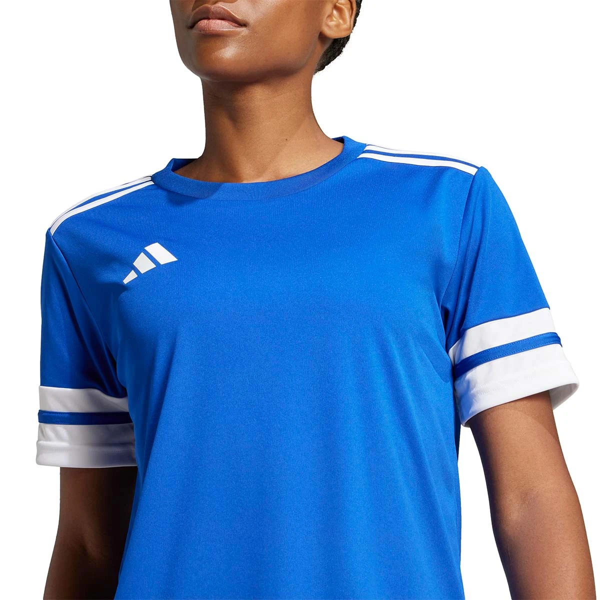 Introductie van het adidas Squadra25 dames-T-shirt, een perfecte combinatie van stijl, comfort en prestaties. Dit shirt is speciaal ontworpen voor voetballiefhebbers voor dames en belichaamt de essentie van de sport met een strak, getailleerd ontwerp in een levendige blauwe kleur dat opvalt op het veld.