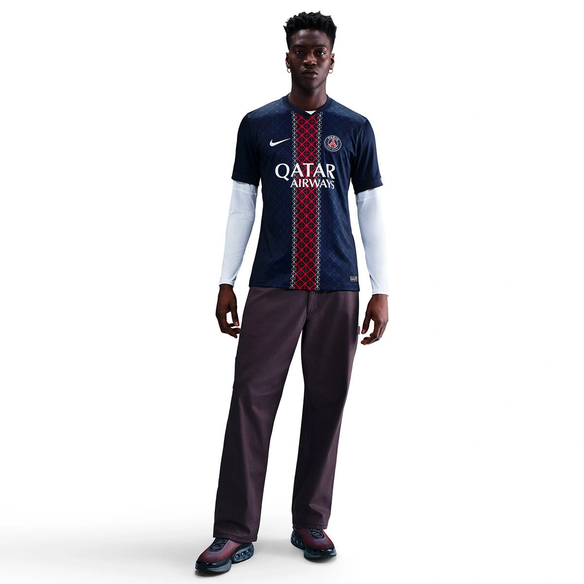 Het PSG 2025-2026 Jersey is geïnspireerd op drie iconische Parijse bezienswaardigheden. De opvallende centrale streep is uitgevoerd in klassiek blauw met een designdetail geïnspireerd op de structuren van deze architecturale iconen.