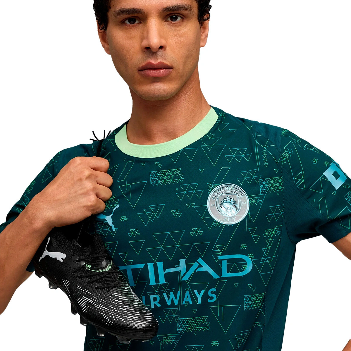 De authentieke versie van dit vierde tenue vertegenwoordigt niet alleen de competitieve geest van Manchester City, maar markeert ook een mijlpaal in de geschiedenis van de club. Ontworpen in samenwerking tussen PUMA en EA SPORTS FC, dit groene shirt met geometrische patronen bevat voor het eerst een NFC-chip in het embleem, waardoor fans hun mobiele telefoons kunnen tikken en exclusieve content in EA SPORTS FC 26 kunnen ontgrendelen.