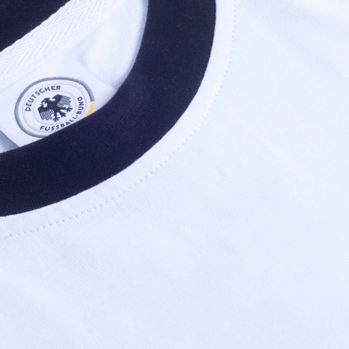 Dit authentieke stuk, ontworpen door Score Draw, vat de essentie van dat legendarische seizoen samen, waarin het talent en de passie van het Duitse team schitterden op het wereldtoneel. Het ontwerp blijft trouw aan het origineel, met dat klassieke wit dat de stadions domineerde en nu deel kan uitmaken van je collectie.