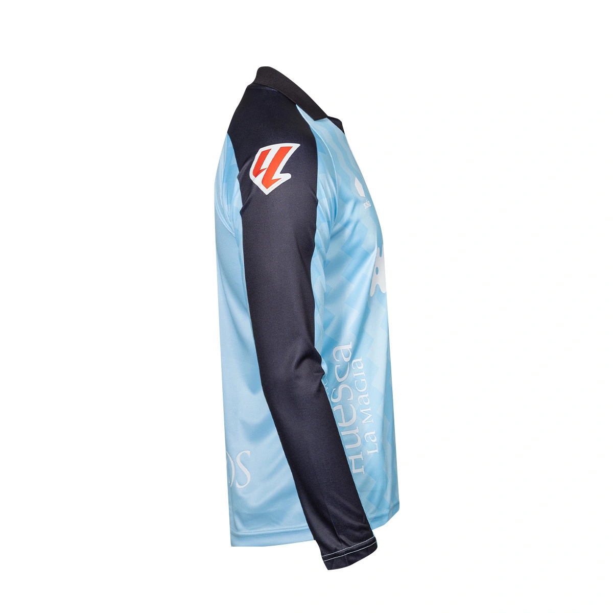 Het shirt van het eerste keeperstenue van Sociedad Deportiva Huesca voor het seizoen 2025-2026 is de perfecte keuze voor doelmannen die het verschil willen maken in elke wedstrijd. Met een ontwerp in Sky Blue en Black tinten, garandeert dit kledingstuk je niet alleen zichtbaarheid op het veld, maar omhult het je ook met een aura van autoriteit onder de lat.