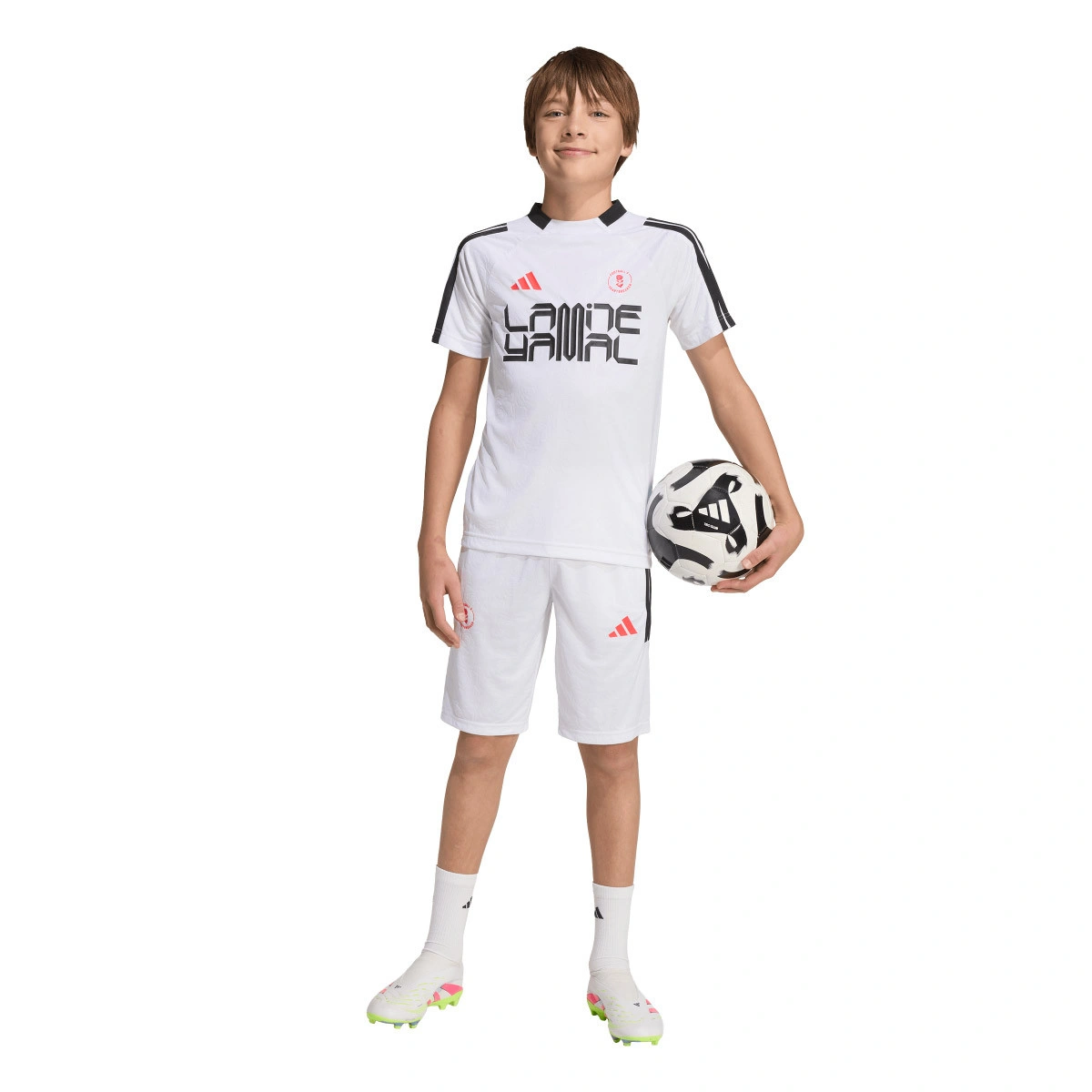 Ontdek de Lamine Yamal korte broek van adidas voor kinderen in het wit! Dit model brengt het beste uit de sportwereld samen met een moderne en modieuze stijl. Perfect om alles te geven tijdens sportieve sessies of voor casual wandelingen in de stad.
