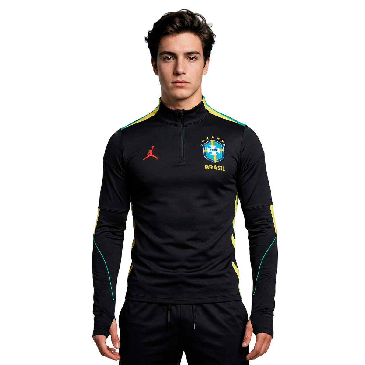 De Brazilië Training Wereldbeker 2026 Black sweatshirt van Jordan is de perfecte combinatie van sportieve stijl en hedendaagse mode. Ontworpen voor de volwassen man die het Braziliaanse nationale elftal volgt, is dit kledingstuk ideaal om het team aan te moedigen tijdens wedstrijden of voor een casual dagelijkse look.