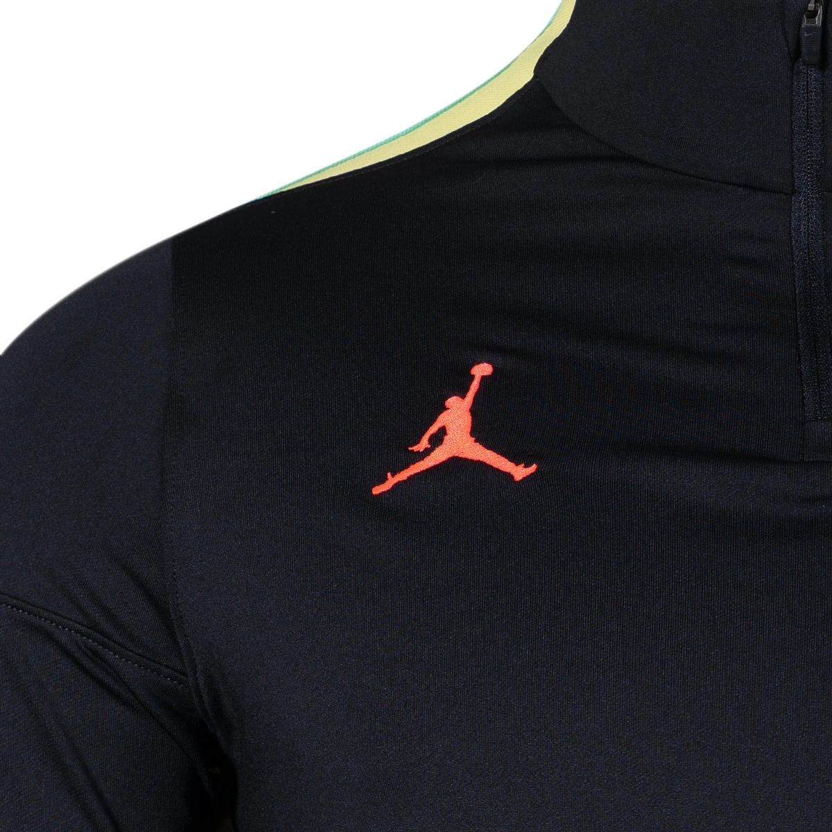 Het eigentijdse ontwerp biedt een elegante contrast tussen de zwarte basis en de groene en gele details die de Braziliaanse geest oproepen met een vleugje verfijning. Het geborduurde CBF-logo op de borst en het iconische Jumpman-silhouet geven het die premium kwaliteit die kenmerkend is voor Nike.