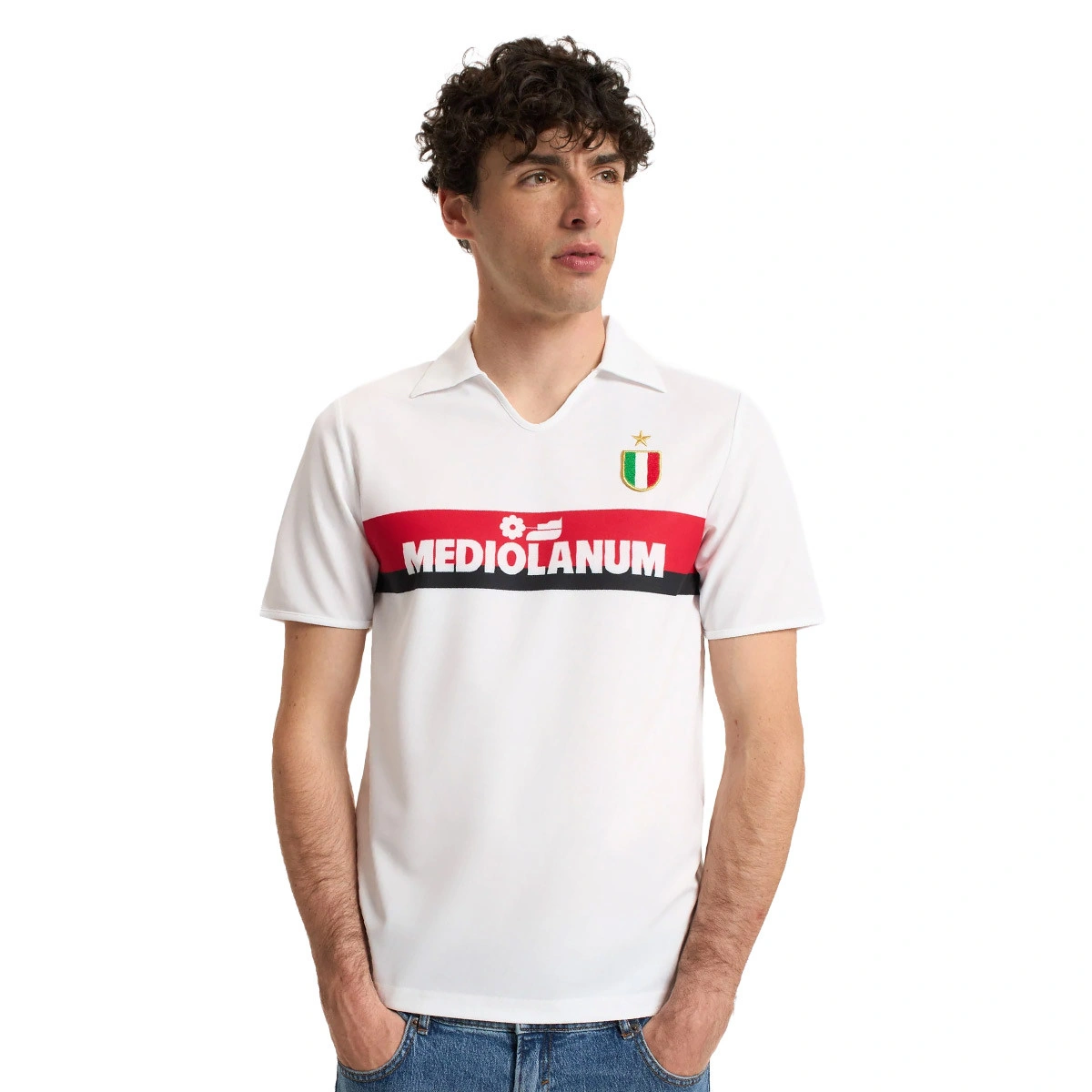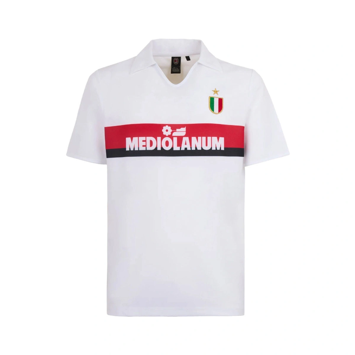 • Mediolanum-logo, hoofdsponsor tijdens het seizoen 1988-1989, gedrukt op de voorkant over een rood-zwarte baan