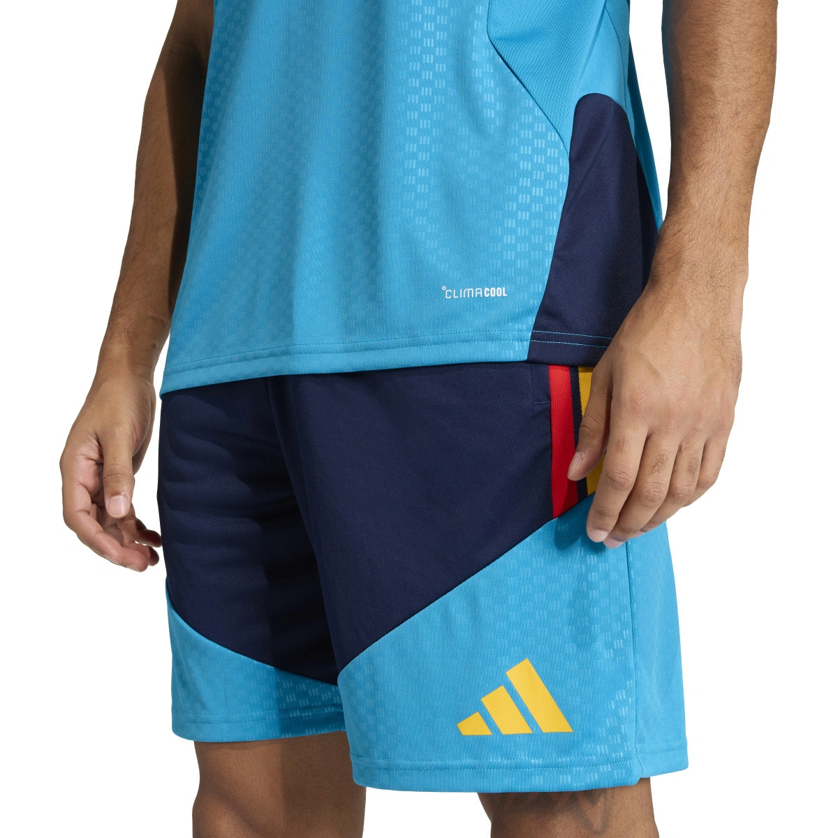 De Climacool-technologie voert zweet af en houdt de huid koel en droog zodat niets je afleidt van de wedstrijd. De aansluitende pasvorm en de ronde hals van dit shirt zorgen voor een gestroomlijnd silhouet, en het reliëfdesign op het voorpaneel geeft een vleugje verfijning. De iconische mesh-inzetstukken op de borst zorgen voor extra ventilatie tijdens de meest intense momenten.