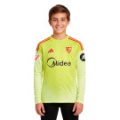 Geef je kleine doelman het shirt dat hen laat opvallen op het veld! Het Sevilla FC Thuis Keepersshirt voor kinderen, ontworpen door adidas, is het perfecte voorbeeld van stijl en functionaliteit.