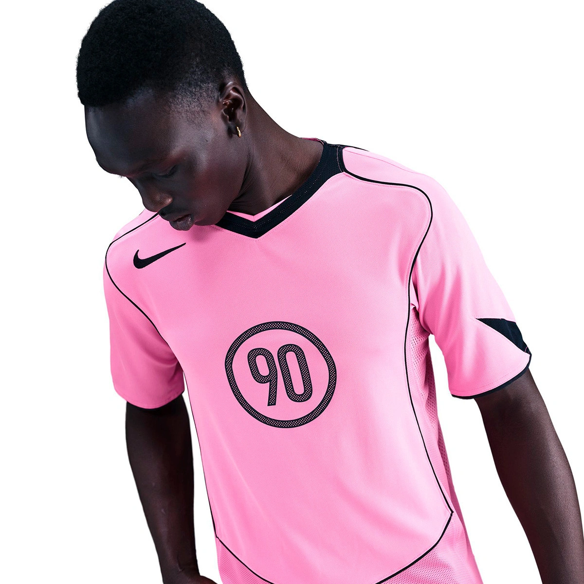 - Het Nike Total 90 (T90) tenue werd halverwege de jaren 2000 gelanceerd en werd gedragen door verschillende Nike teams en clubs. Iconische kenmerken zijn het Swoosh-logo op de rechterborst, biesdetails en een kleurblokontwerp op de achterkant.