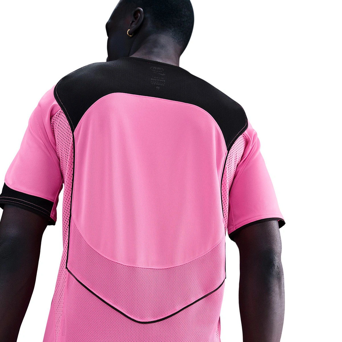 - Ademende jersey combineert een zacht gebreide stof met mesh-panelen op de kraag, zijkanten en achterkant.