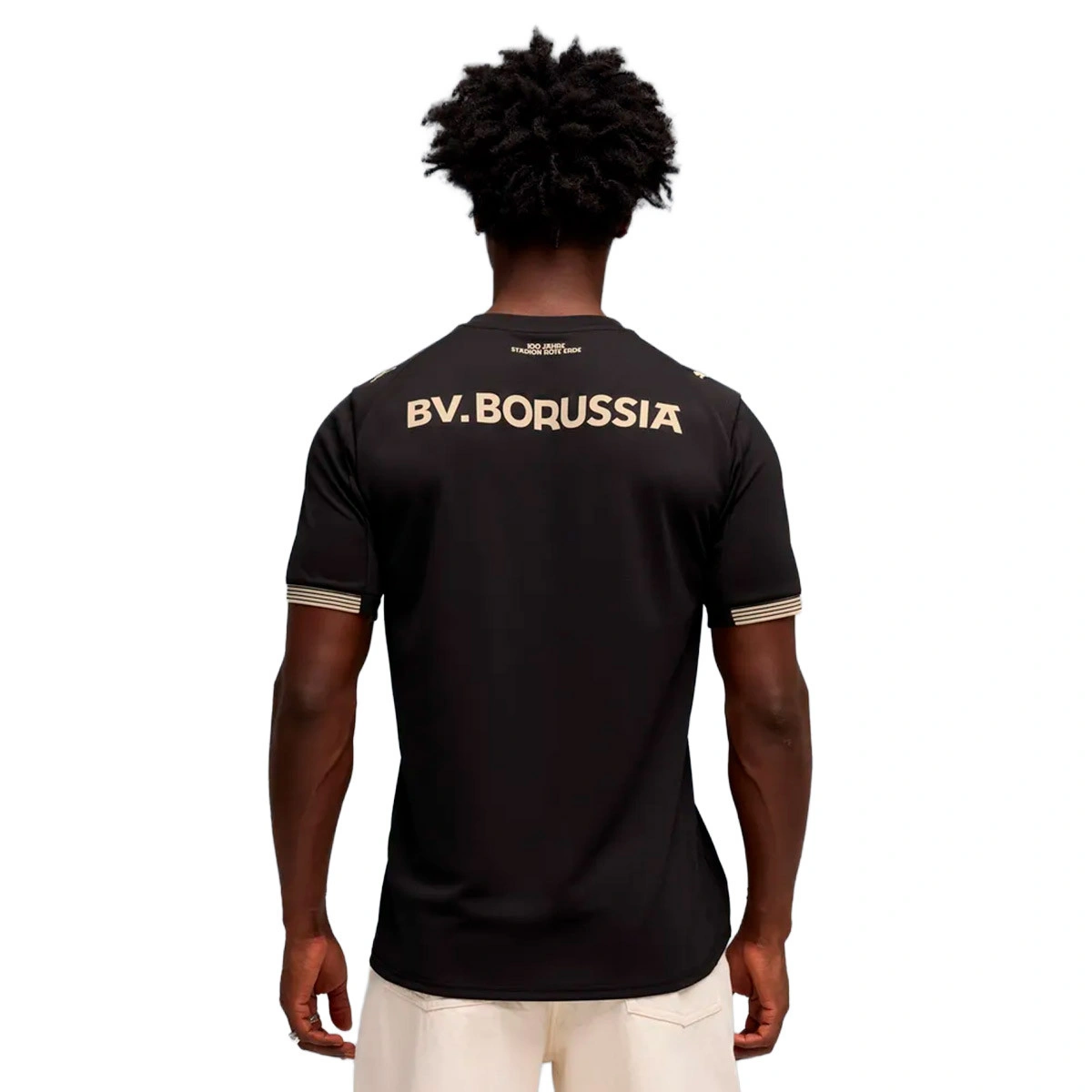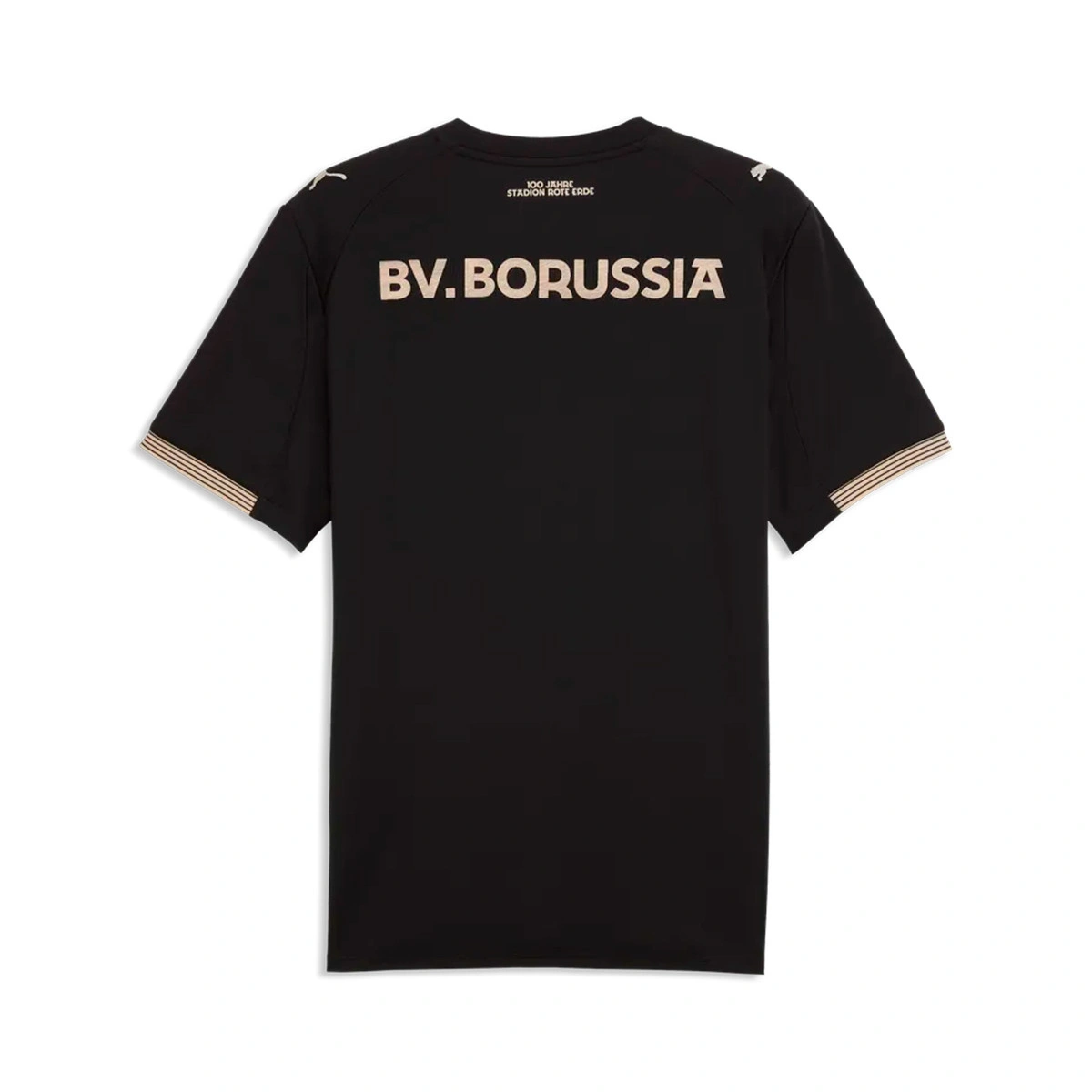 Het embleem en het kleurenpalet zijn geïnspireerd op de zandstenen muren die het stadion sinds 1926 omlijsten, wat een authentiek en vintage tintje geeft dat nieuwe generaties verbindt met de essentie van de BVB. Op de achterkant sluit het opschrift “100 Jahre Stadion Rote Erde” (“100 jaar Stadion Rote Erde”) dit unieke eerbetoon aan het verleden en heden van Borussia Dortmund af.
