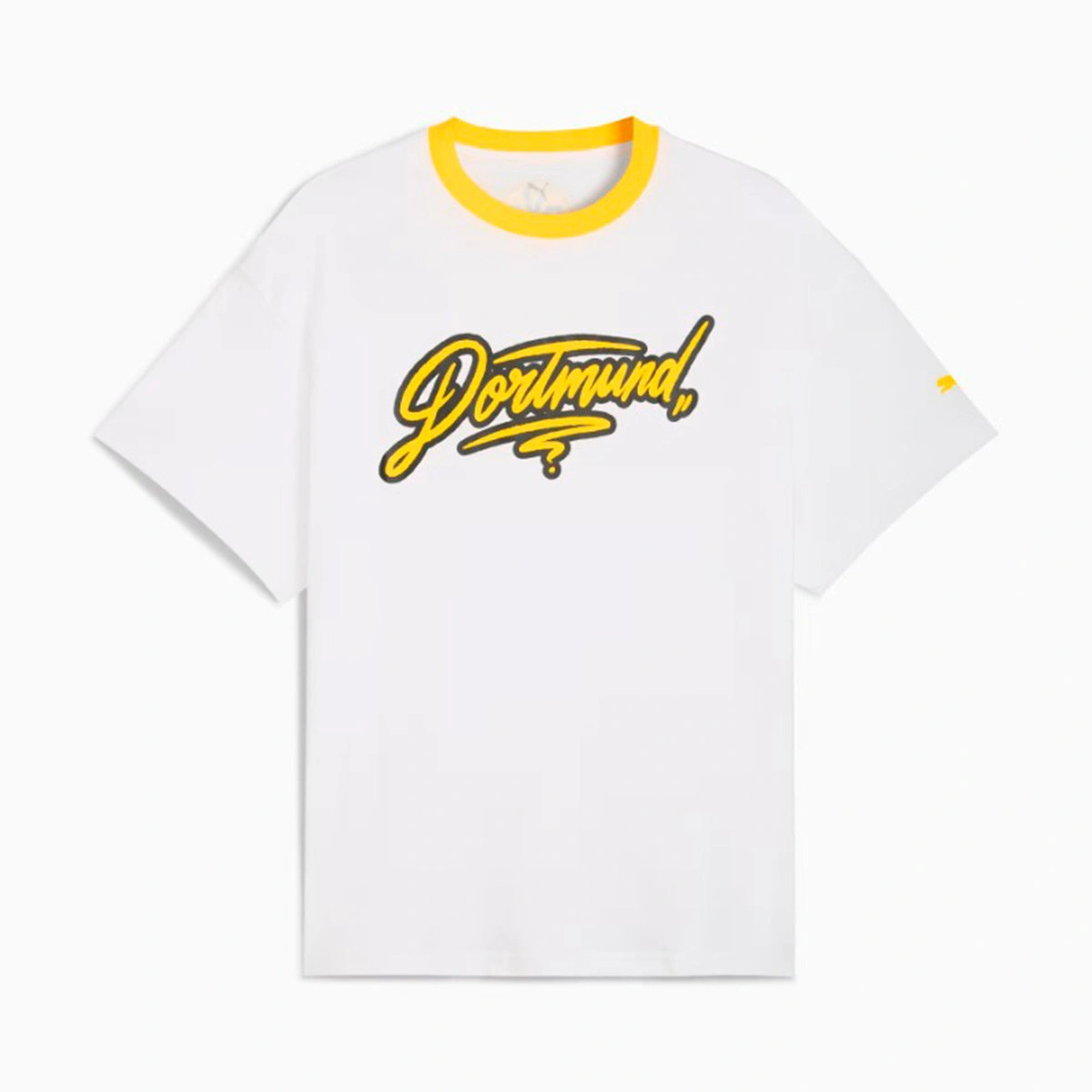 Vier 's werelds grootste clubtoernooi met dit PUMA HOOPS x Borussia Dortmund T-shirt. Het heeft een oversized pasvorm en korte mouwen met Borussia Dortmund en PUMA Hoops merkdetails.