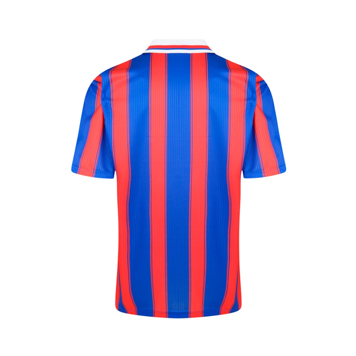 De details van de kraag, trouw aan de retrostijl, geven het een vleugje elegantie en onderscheid, waarbij het embleem op de borst trots en toewijding symboliseert. Dit shirt is niet zomaar een kledingstuk, het is een eerbetoon aan de onvergetelijke momenten die de geschiedenis van Crystal Palace hebben bepaald. Draag de geschiedenis en word deel van een ongeëvenaarde traditie met dit iconische shirt.