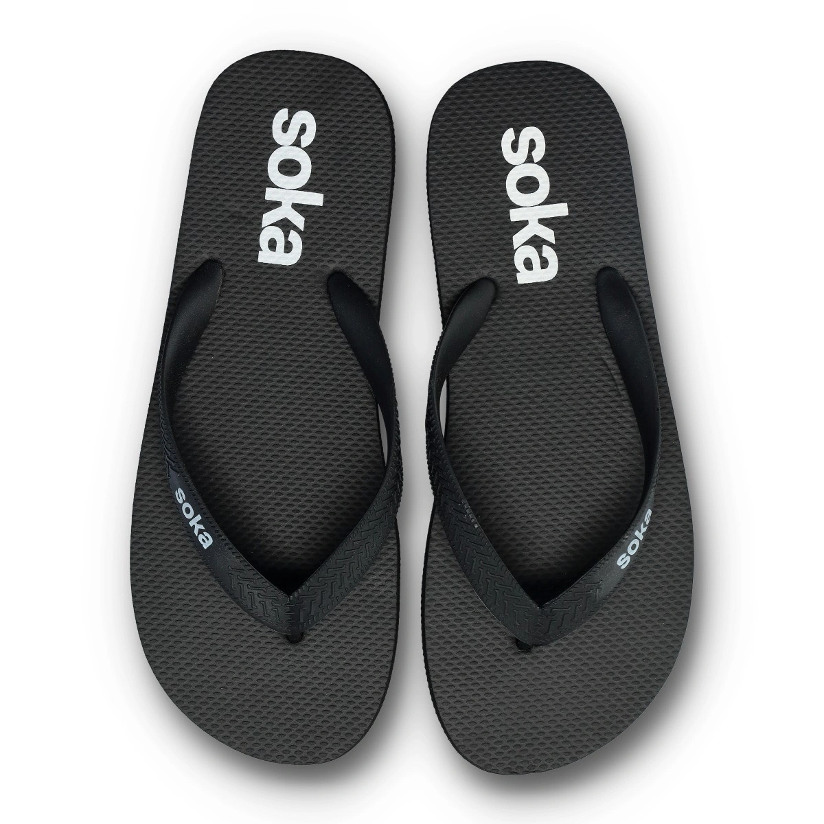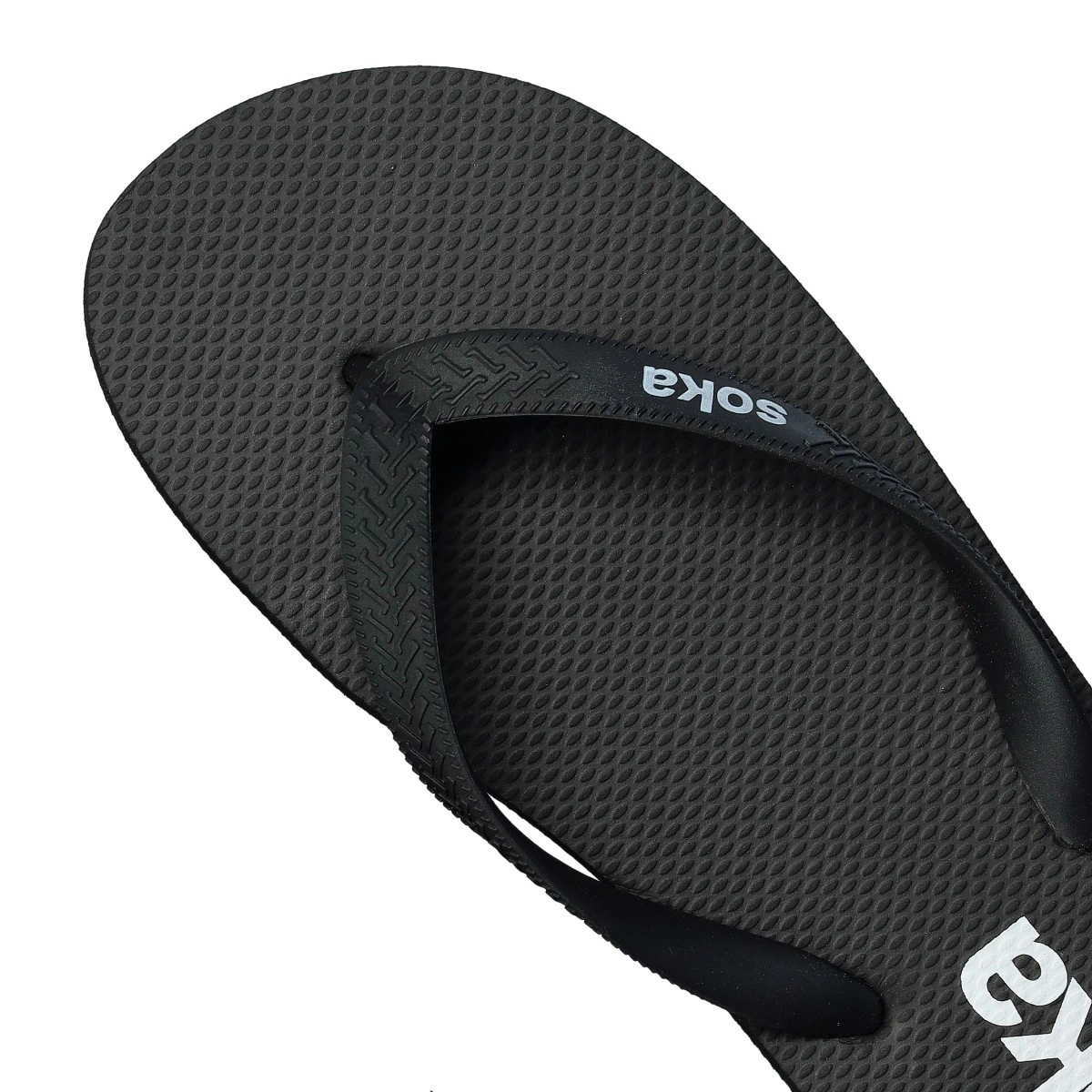 Flip Flop Soul teenslippers van het merk soka in het zwart voor heren, ideaal om te genieten op het strand of aan het zwembad. De vorm en teenriem zijn zo ontworpen dat je heel comfortabel kunt lopen en met grote stabiliteit op de grond kunt rusten.