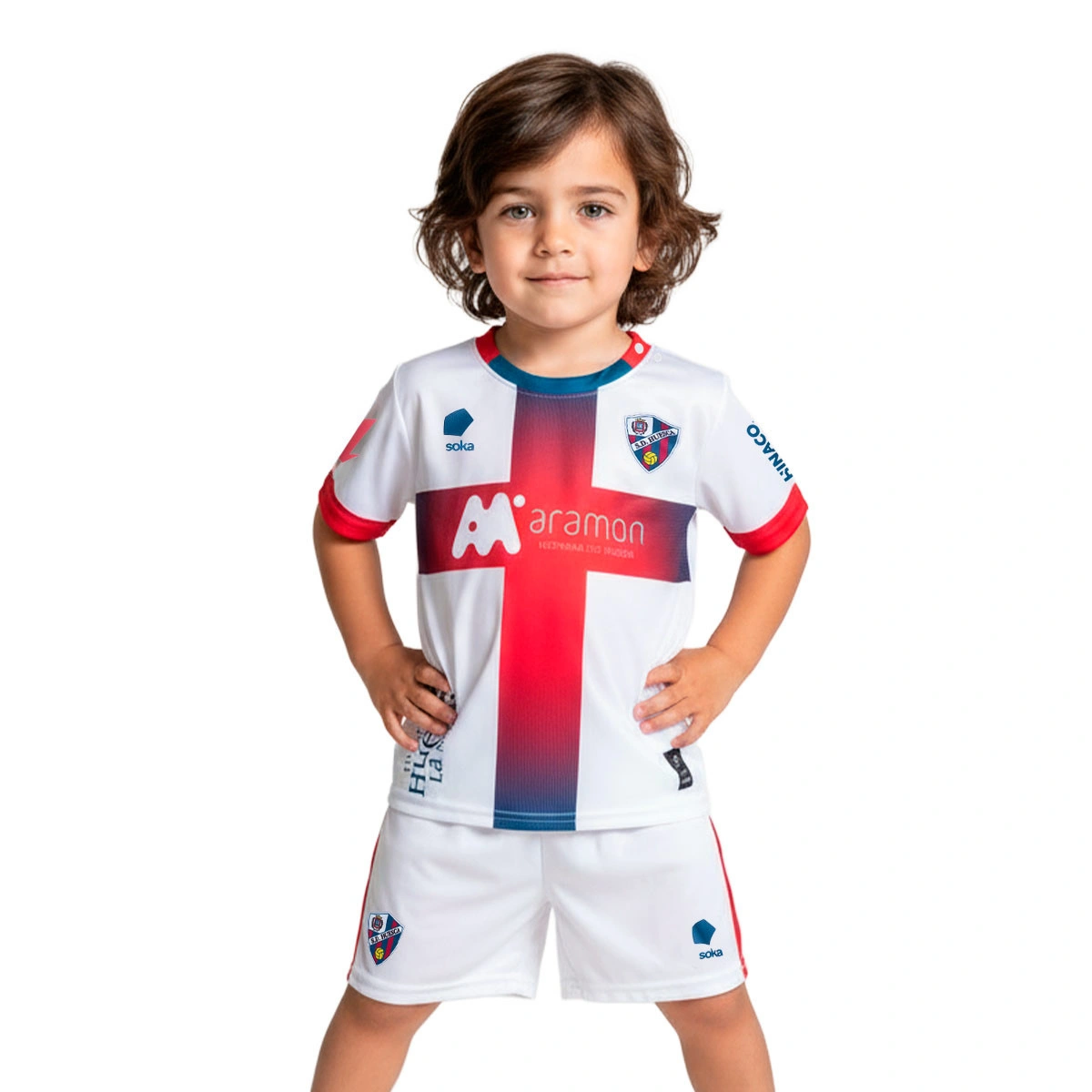 Het setje is gemaakt van geavanceerde technologie-materialen die comfort en duurzaamheid garanderen, zodat de kleintjes vrij kunnen spelen als echte kampioenen, terwijl ze de trots voelen deel uit te maken van de SD Huesca-supporters. Ideaal om te dragen tijdens wedstrijddagen in het stadion of overal waar je de liefde voor het team wilt tonen.
