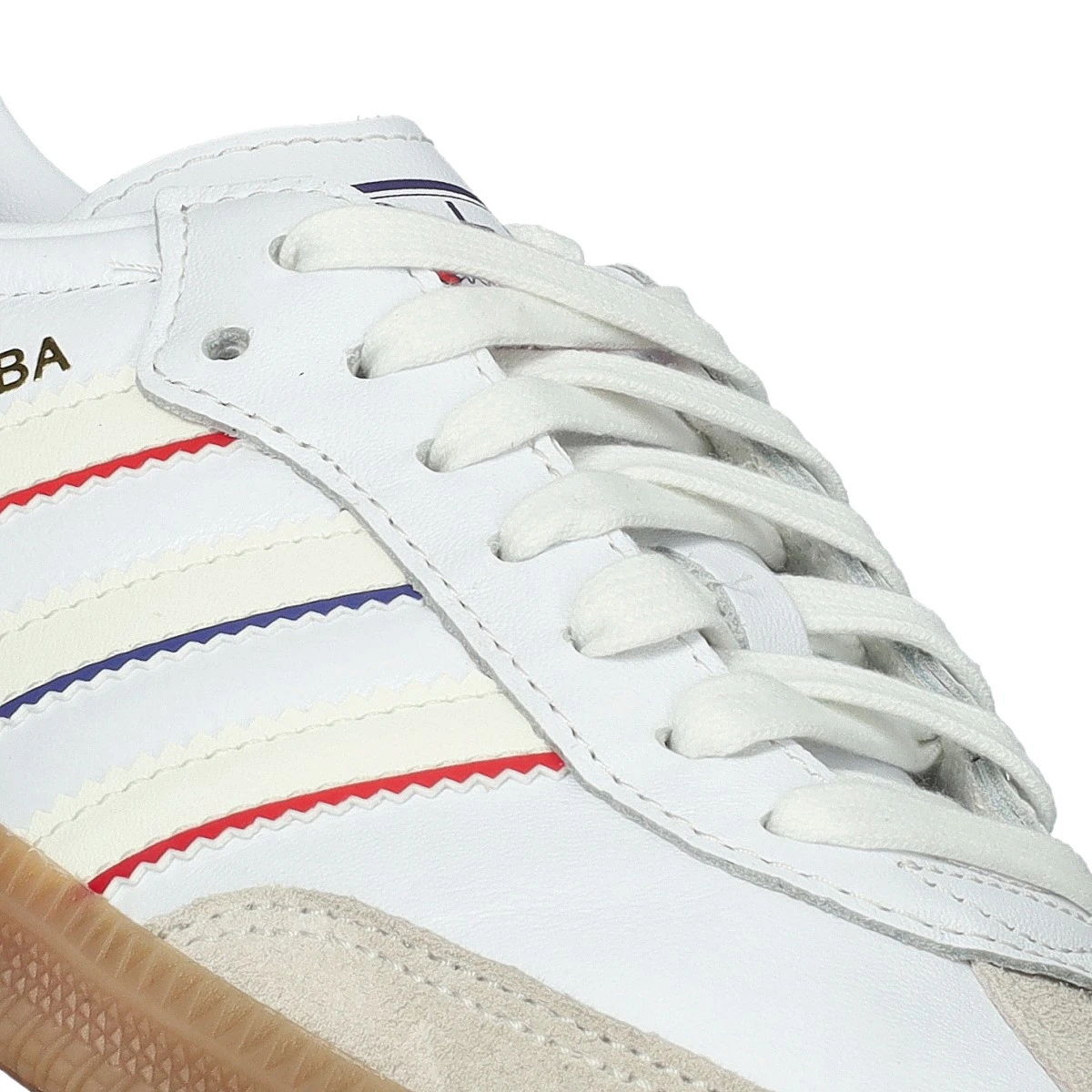 Gemaakt voor fans van Olympique Lyon om buiten het stadion te pronken met hun voetbalstijl. De Samba-schoen, een icoon van adidas schoenen, staat bekend om zijn zachte leren bovenwerk en T-vormige suède neus. Dit paar is gemaakt in de kleuren van Lyon's eerste tenue en heeft een teamembleem op de hielversteviging, dus het is niet te raden wie je favoriete team is.