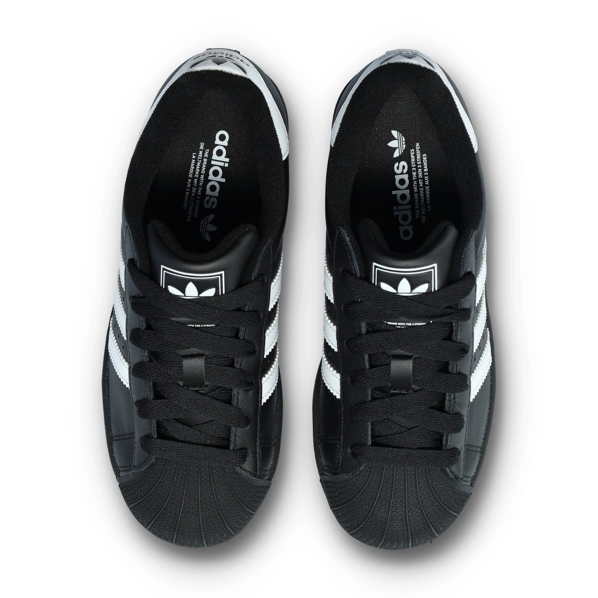 Oorspronkelijk ontworpen voor basketbal, heeft de adidas Superstar zijn oorsprong overstegen om de straten te veroveren en een referentiepunt te worden in de stedelijke mode. Het zachte leren bovenwerk zorgt voor een gestroomlijnde stijl, terwijl de iconische rubberen neus een symbool blijft van hun erfgoed. Met een gewatteerde tong en kraag bieden ze het comfort dat je nodig hebt voor de hele dag. De rubberen buitenzool zorgt voor grip en duurzaamheid, waardoor ze perfect zijn voor elk terrein - maak de adidas Superstar van jou en val op elk podium met een look vol geschiedenis en stijl!
