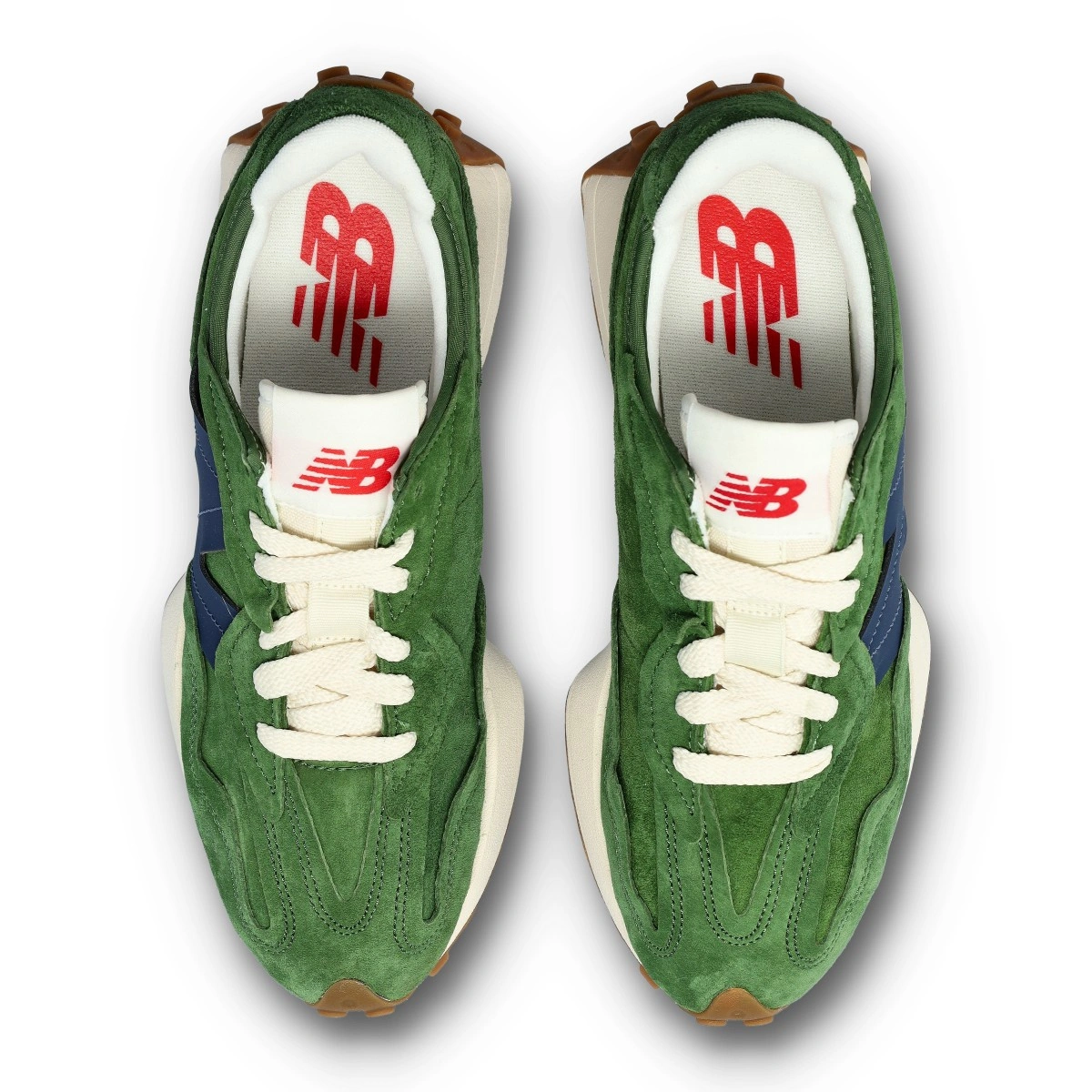 Deze schoenen vertegenwoordigen de populariteit van hardlopen in de jaren 70, schoeisel liet zijn eenvoudige bestaan achter en begon te wedden op prestaties. Hoewel de ontwerpen van die tijd er vandaag heel eenvoudig uit zouden zien, valt het decennium op als het moment waarop hardlopen hun eigen persoonlijkheid kregen. De 327 is een mijlpaal in de jaren 70 op het gebied van innovatie, waarbij de elementen van de klassieke stijl worden overtreden en ze een eigentijdse uitstraling krijgen. Met een hoekig herontwerp van het betrouwbare wedge-silhouet, de asymmetrisch aangebrachte 'N'-silo en de trail-geïnspireerde buitenzool met reliëf, is de 327 een integrale herinterpretatie van onze hardlopen .