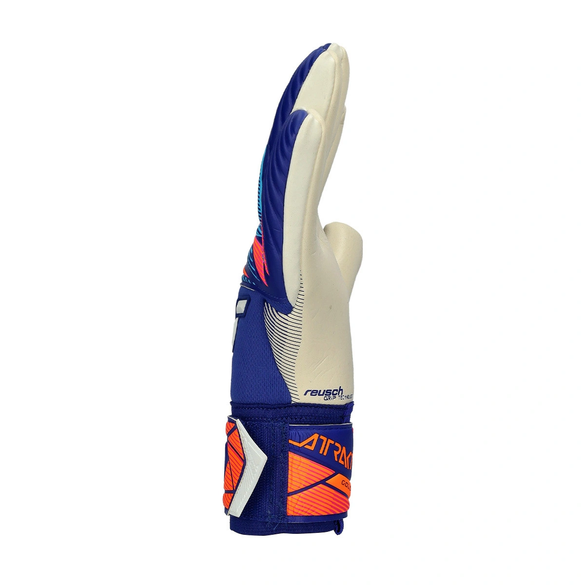Reusch Attrakt Freegel Gold X keepershandschoenen. Handschoenen voor volwassenen met negative cut in de kleur sharp blue-white-shocking orange.