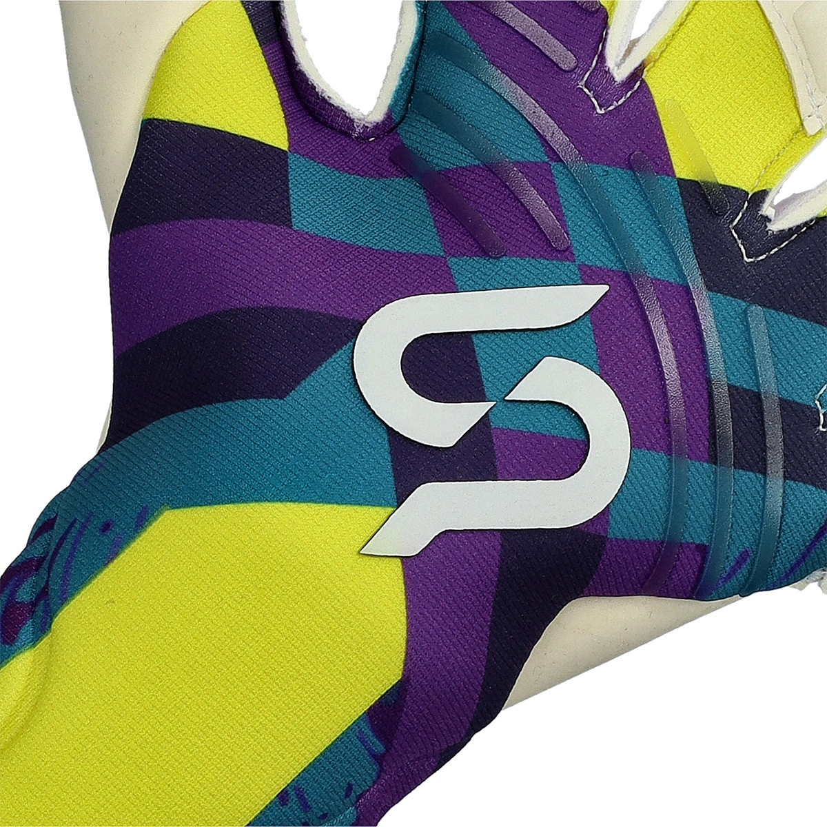 SP Earhart keepershandschoenen Pro Retro in de kleur white-purple-yellow. Handschoenen voor volwassenen met rollfinger-snit.