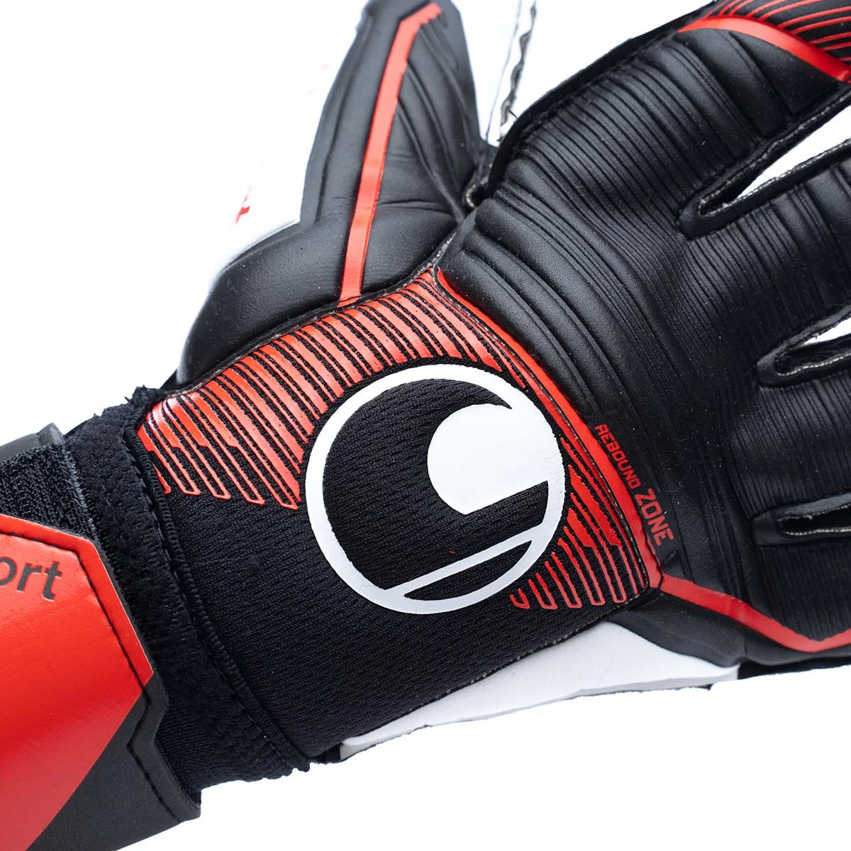 Uhlsport keepershandschoen Powerline Soft Pro voor kinderen in de kleur Zwart-Rood-Wit.