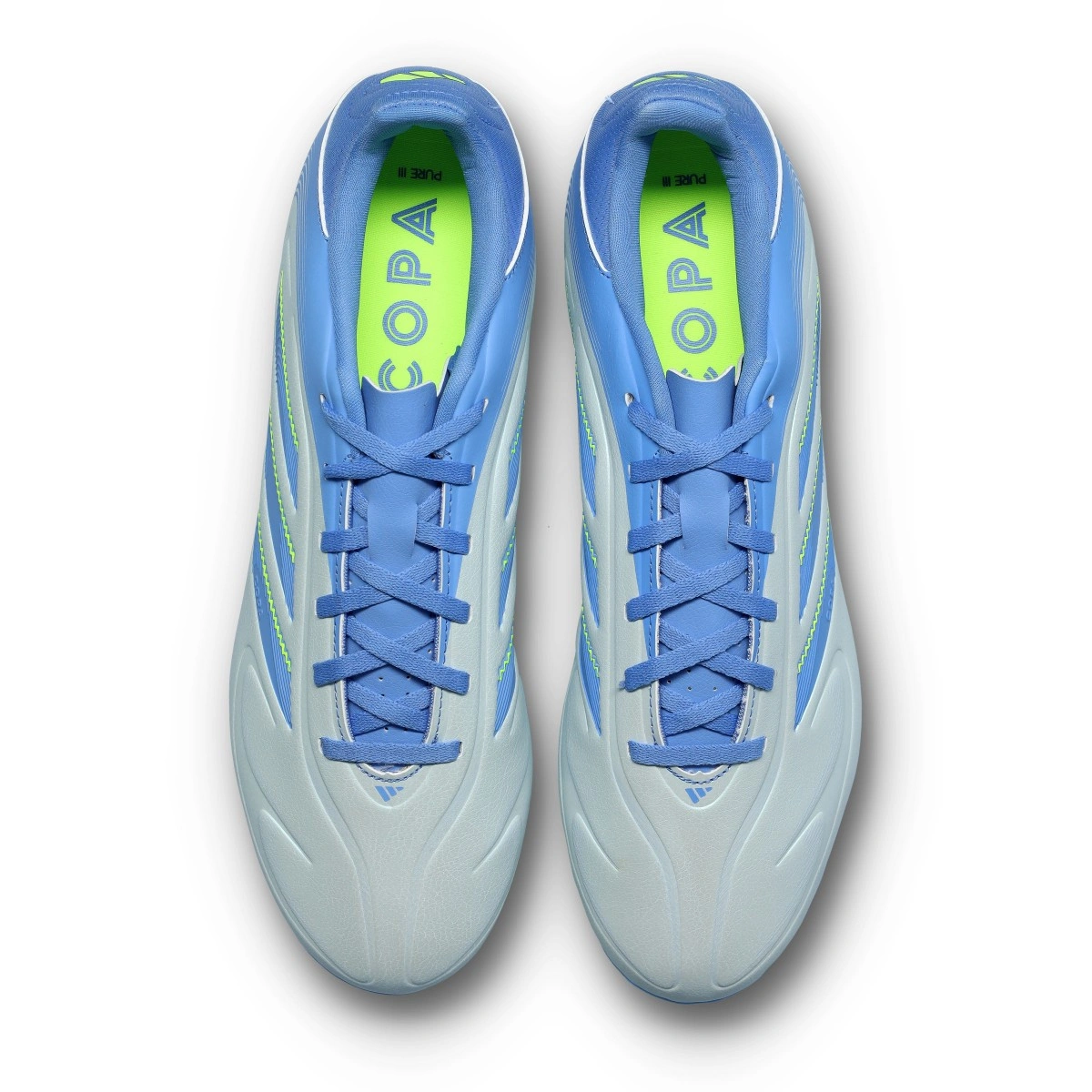 Voetbalschoen Copa Pure III Club FG/MG voor volwassenen van adidas. Schoen in de kleur Halo Blue-Blue Fusion-Lucid Lemon.