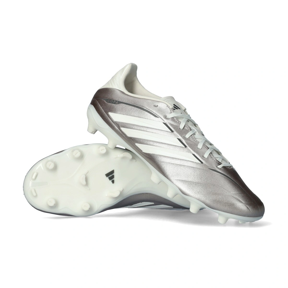 adidas Copa Pure IV League voetbalschoenen FG. Synthetische leren voetbalschoenen voor gebruik op natuurgrasvelden. Basisassortiment schoenen in de kleur Taupe Met-Zero Met-Night Met voor klassieke spelers.
