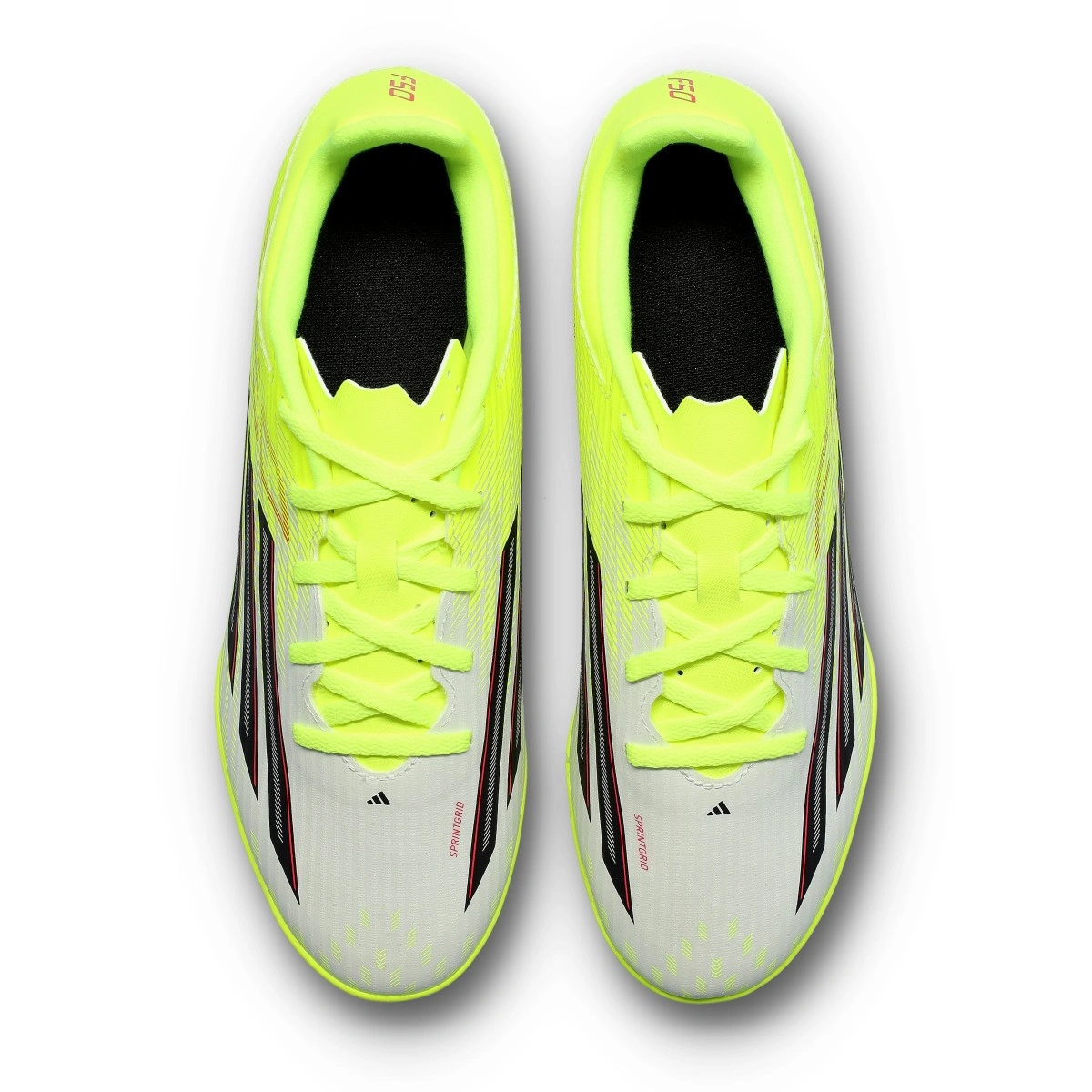 adidas F50 Club Turf schoen in de kleur Team Solar Yellow-Core Black-Lucid Red. Instapmodel schoen voor kunstgras of tweede generatie kunstgrasvelden.