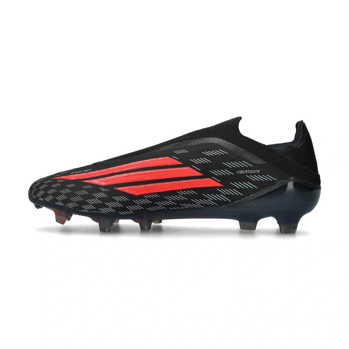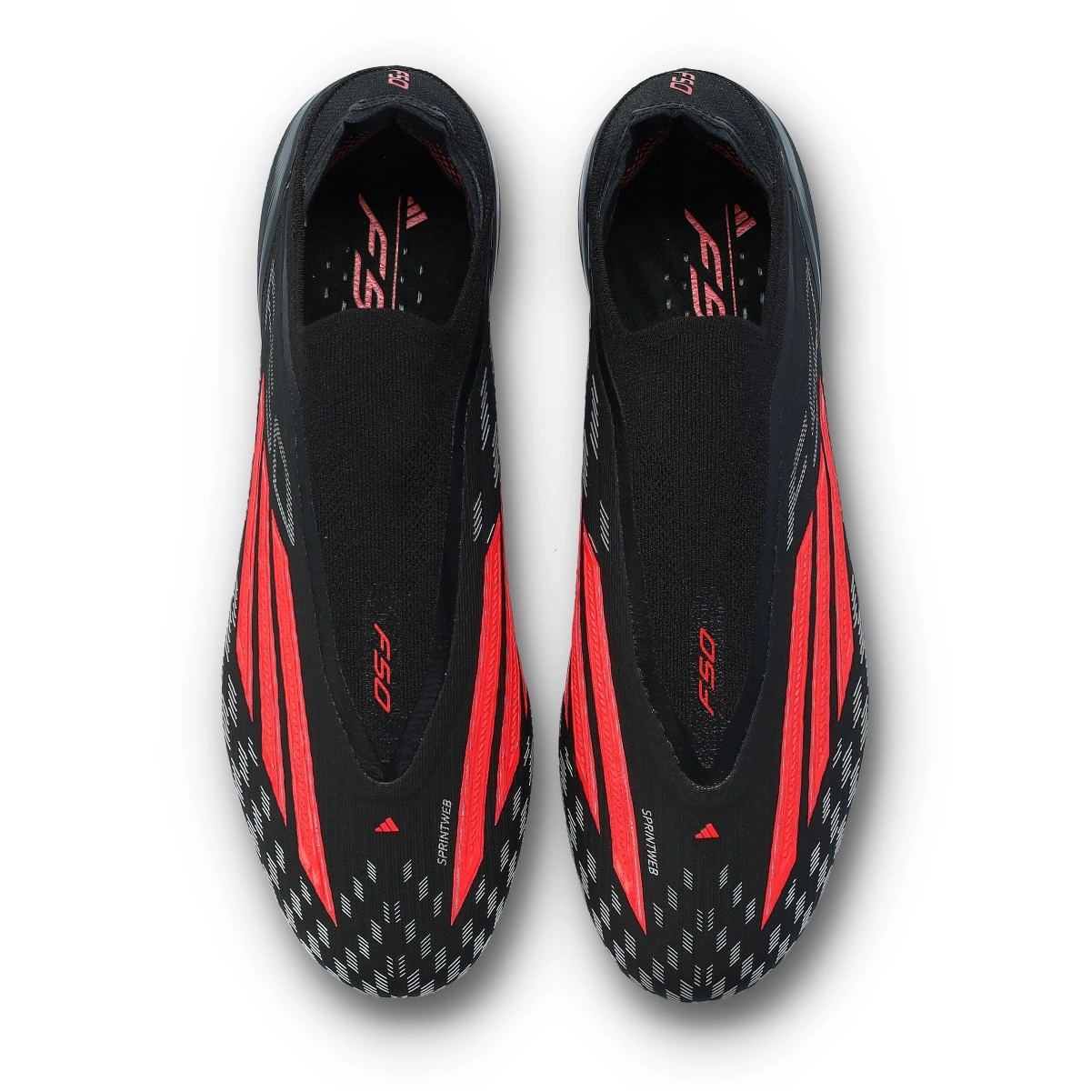 F50 Elite LL FG schoen van het merk adidas voor natuurgrasvelden. Hoogwaardige vetersloze schoen in de kleur Core Black-Lucid Red-Core Black.