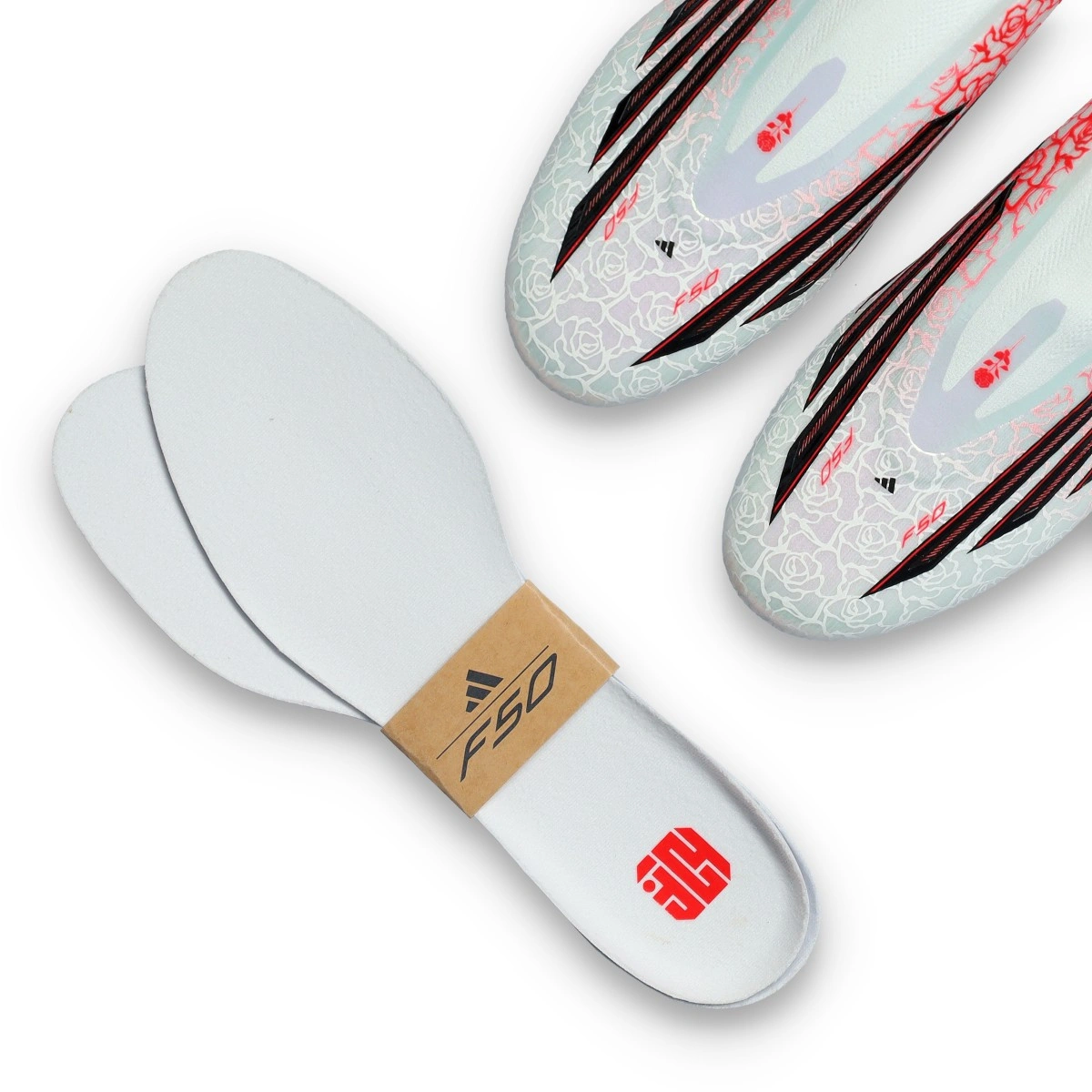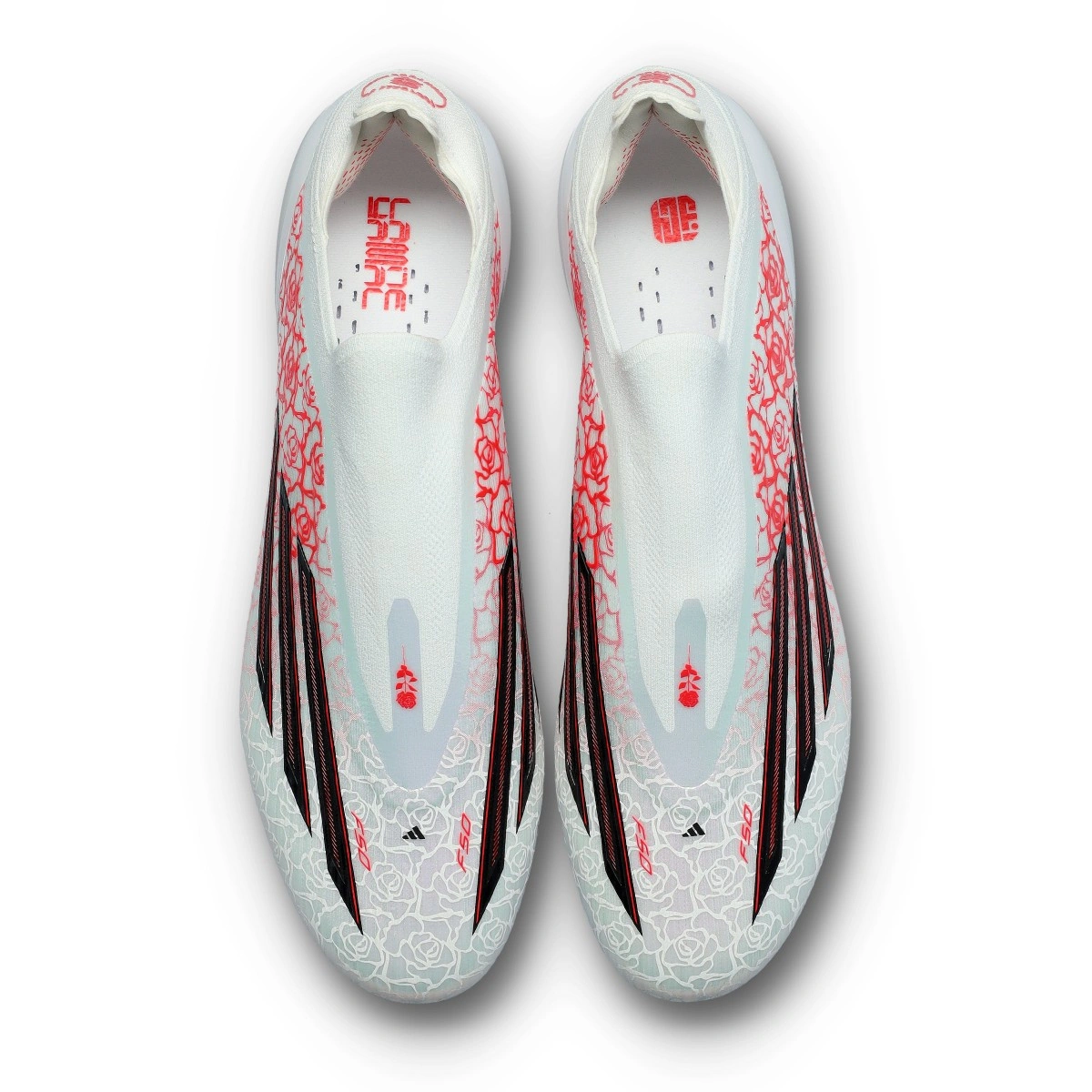 Geïnspireerd op de dag van Sant Jordi, brengt deze speciale editie van de F50 een eerbetoon aan een van de meest emblematische tradities van Barcelona, waar op 23 april de straten gevuld zijn met boeken en rozen als symbool van liefde en passie. Een lokaal verhaal dat tot leven komt in een schoen ontworpen voor wie voetbal ziet als een vorm van expressie. Een ontwerp met karakter, bedoeld om een stempel te drukken op het veld, elke tegenstander te overtreffen en het veld te verlaten met een roos als laatste handtekening na elke overwinning.