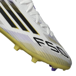 adidasF50 League Mid FG/ MG schoen in White-Core Black-Gold Met. Speelschoen om te concurreren op natuurgras.