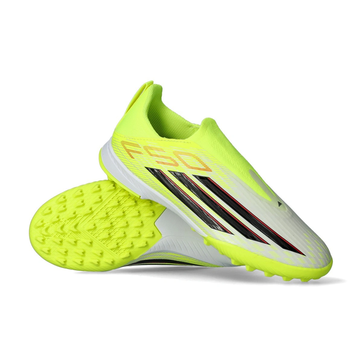 adidas F50 League LL Turf schoen voor kinderen in de kleur Team Solar Yellow -Core Black-Lucid Red. Instapmodel schoen voor kunstgras en kunstgrasvelden.