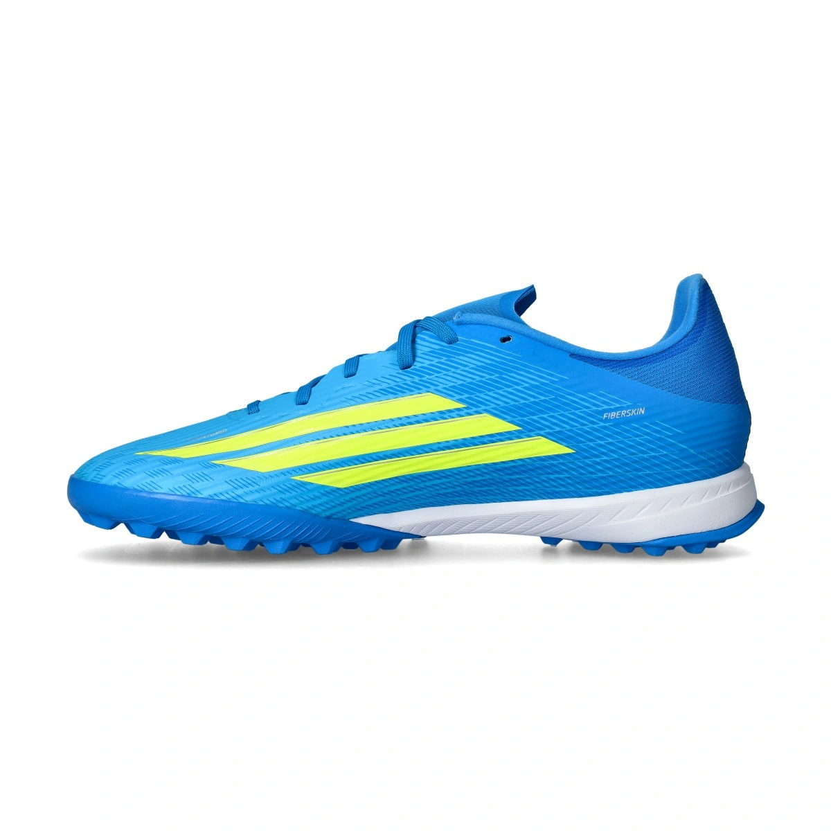 F50 League Turf schoen van het merk adidas in de kleur Lucid Ray Blue-Team Solar Yellow-Lucid Aqua. Schoen uit het basisassortiment voor kunsttapijt en kunstgrasvelden.