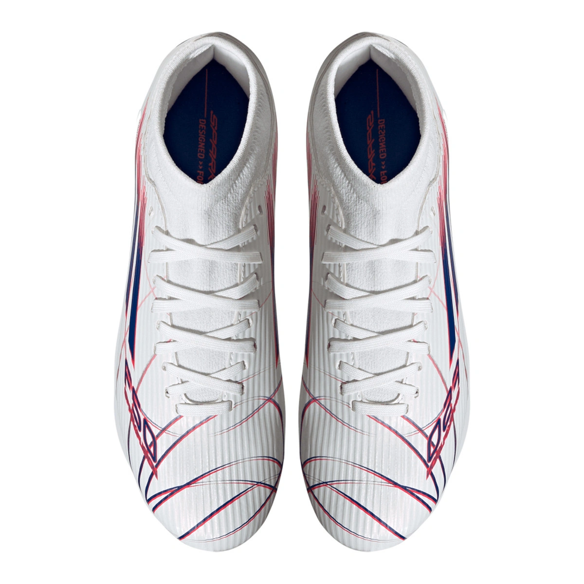 F50 Sparkfusion League FG/AG Mid Trinity Rodman schoen voor dames van het merk adidas in de kleur White-Team Royal Blue-Lucid Red. Schoen uit het instapsegment voor natuurgras en kunstgras van de tweede generatie.
